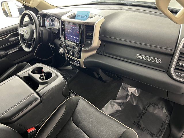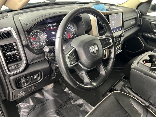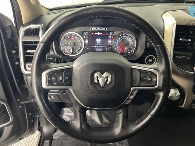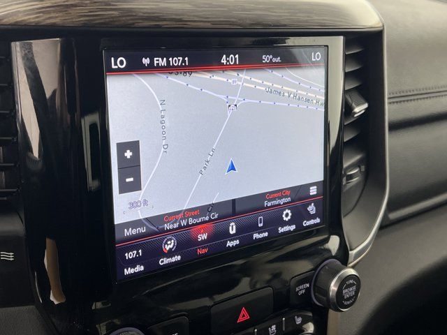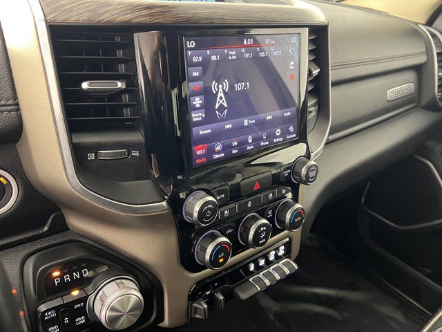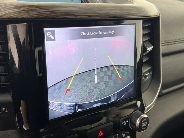 RADIO: UCONNECT 4C NAV W/8.4 DISPLAY -inc: SiriusXM Traffic Plus Disassociated Touchscreen Display HD Radio For Details Visit DriveUconnect.com 1-Yr SiriusXM Guardian Trial 5-Year SiriusXM Travel Link Service GPS Navigation 5-Year SiriusXM Traffic Service SiriusXM Travel Link 4G LTE Wi-Fi Hot Spot No Satellite Coverage w/HI/AK/PR/VI/GU,DIAMOND BLACK CRYSTAL PEARLCOAT,PARKSENSE FRONT/REAR PARK ASSIST W/STOP,MONOTONE PAINT,GVWR: 7 100 LBS,BLACK LEATHER TRIM 40/20/40 BENCH SEAT,ENGINE: 5.7L V8 HEMI MDS VVT ETORQUE -inc: Active Noise Control System Heavy Duty Engine Cooling GVWR: 7 100 lbs Dual Rear Exhaust w/Bright Tips Hemi Badge 18 Aluminum Spare Wheel,TRAILER TOW GROUP -inc: Trailer Brake Control,TRANSMISSION: 8-SPEED AUTOMATIC (8HP75),QUICK ORDER PACKAGE 27H LARAMIE -inc: Engine: 5.7L V8 HEMI MDS VVT eTorque Transmission: 8-Speed Automatic (8HP75),TIRES: 275/65R18 BSW ALL SEASON LRR (STD),LARAMIE LEVEL 1 EQUIPMENT GROUP -inc: Remote Tailgate Release Auto High Beam Headlamp Control Blind Spot & Cross Path Detection Rain Sensitive Windshield Wipers ParkSense Front/Rear Park Assist w/Stop Tailgate Ajar Warning Lamp Foam Bottle Insert (Door Trim Panel) 2nd Row In Floor Storage Bins Rear 60/40 Folding Split Recline Seat,3.21 REAR AXLE RATIO (STD),TRAILER BRAKE CONTROL,ANTI-SPIN DIFFERENTIAL REAR AXLE,PARKSENSE FRONT/REAR PARK ASSIST W/STOP,WHEELS: 18 X 8 ALUMINUM BASE PAINTED (STD),Four Wheel Drive,Tow Hitch,Power Steering,ABS,4-Wheel Disc Brakes,Brake Assist,Lithium Ion Traction Battery,Aluminum Wheels,Conventional Spare Tire,Heated Mirrors,Power Mirror(s),Integrated Turn Signal Mirrors,Power Folding Mirrors,Rear Defrost,Privacy Glass,Intermittent Wipers,Variable Speed Intermittent Wipers,Power Door Locks,Daytime Running Lights,Automatic Headlights,LED Headlights,Fog Lamps,AM/FM Stereo,Satellite Radio,Bluetooth Connection,Requires Subscription,Premium Sound System,MP3 Capability,Steering Wheel Audio Controls,Auxiliary Audio Input,Premium Sound System,Satellite Radio,Requires Subscription,Bluetooth Connection,Heated Front Seat(s),Cooled Front Seat(s),Heated Front Seat(s),Seat Memory,Power Driver Seat,Power Passenger Seat,Adjustable Steering Wheel,Trip Computer,Power Windows,WiFi Hotspot,Driver Adjustable Lumbar,Passenger Adjustable Lumbar,Pass-Through Rear Seat,Rear Bench Seat,Leather Steering Wheel,Heated Steering Wheel,Keyless Entry,Power Door Locks,Keyless Entry,Power Door Locks,Keyless Start,Universal Garage Door Opener,Cruise Control,Climate Control,Multi-Zone A/C,A/C,Woodgrain Interior Trim,Leather Seats,Split Bench Seat,Auto-Dimming Rearview Mirror,Driver Vanity Mirror,Passenger Vanity Mirror,Driver Illuminated Vanity Mirror,Passenger Illuminated Visor Mirror,Floor Mats,Mirror Memory,Remote Engine Start,Keyless Start,Smart Device Integration,Smart Device Integration,Power Windows,Power Door Locks,Adjustable Pedals,Trip Computer,Power Driver Seat,Mirror Memory,Immobilizer,Security System,Traction Control,Stability Control,Traction Control,Front Side Air Bag,Tire Pressure Monitor,Driver Air Bag,Passenger Air Bag,Front Head Air Bag,Rear Head Air Bag,Passenger Air Bag Sensor,Child Safety Locks,Back-Up Camera