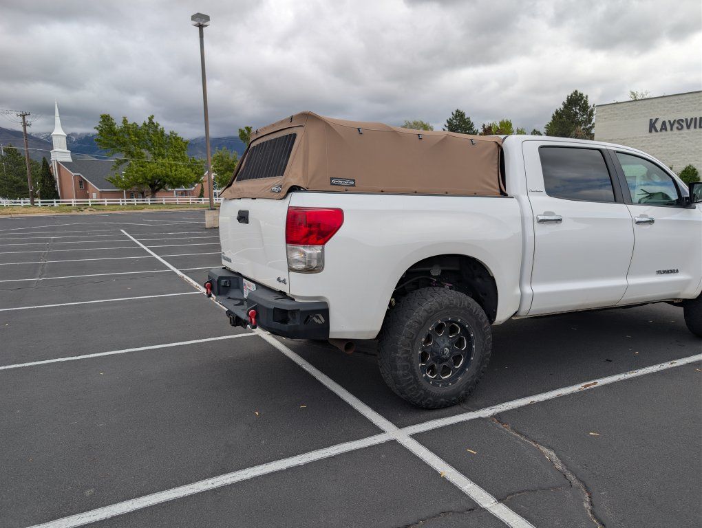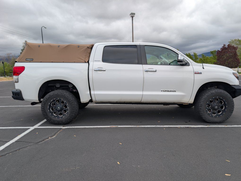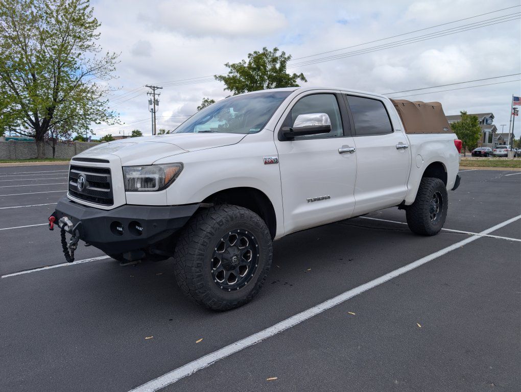 I am going to be really sad to see this go, but with a growing family, it is time. For sale is my 2012 Toyota Tundra Platinum Crewmax. This truck has the legendary 5.7-liter iForce V8, and it only has 123,000 miles on it. This truck has been extremely well cared for. It has had regular maintenance ahead of schedule each time using only synthetic fluids. All of the maintenance is up to date. It has not been abused, and it served our family extremely well as we ventured into the mountains. Everything works as it should. AC blows very cold, and the heat warms you right up. The seat heaters and coolers also work quite well. The truck has well over 10,000 dollars in high-end professionally installed aftermarket parts. Here is a list of those, and I will likely not remember everything.
