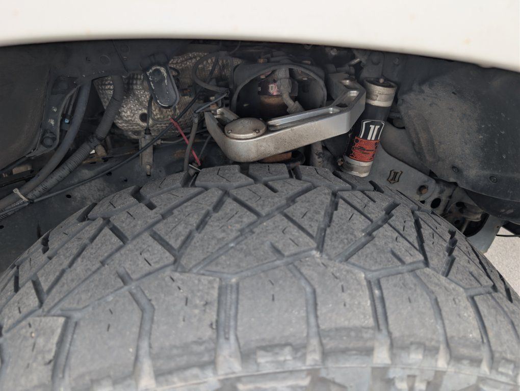 Front Icon coil-over lift with billet aluminum upper control arms. They were rebuilt less than 10,000 miles ago.