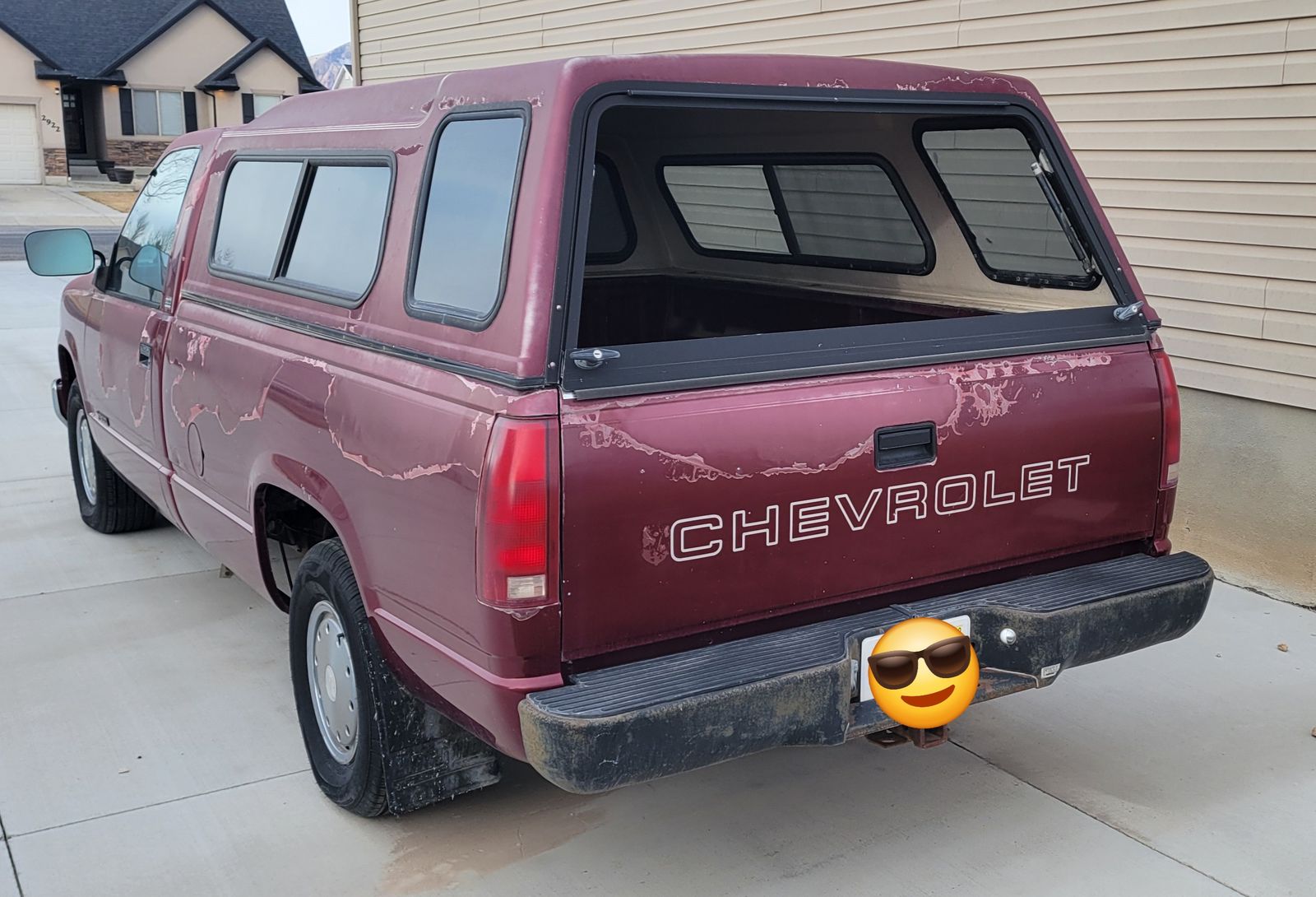 1989 base Chevy Cheyenne. One family owned from new. Odometer doesn't work, actual mileage is around 180,000. Needs exhaust work to pass emmissions. Runs and drives good, can be used as is once emissions passed, or would be a great, easy, fast restoration. Please, not basic questions of "is this available?" The ad is up, it's available. Only serious inquiries, not willing to play games with no shows to view, time wasting questions etc.