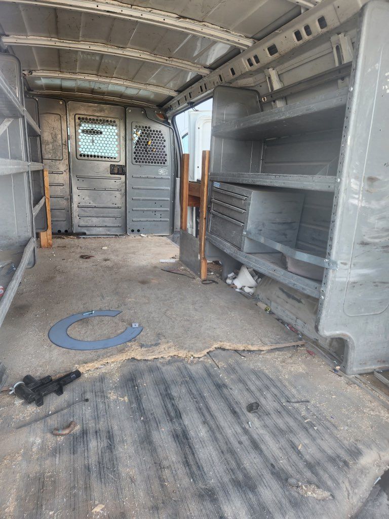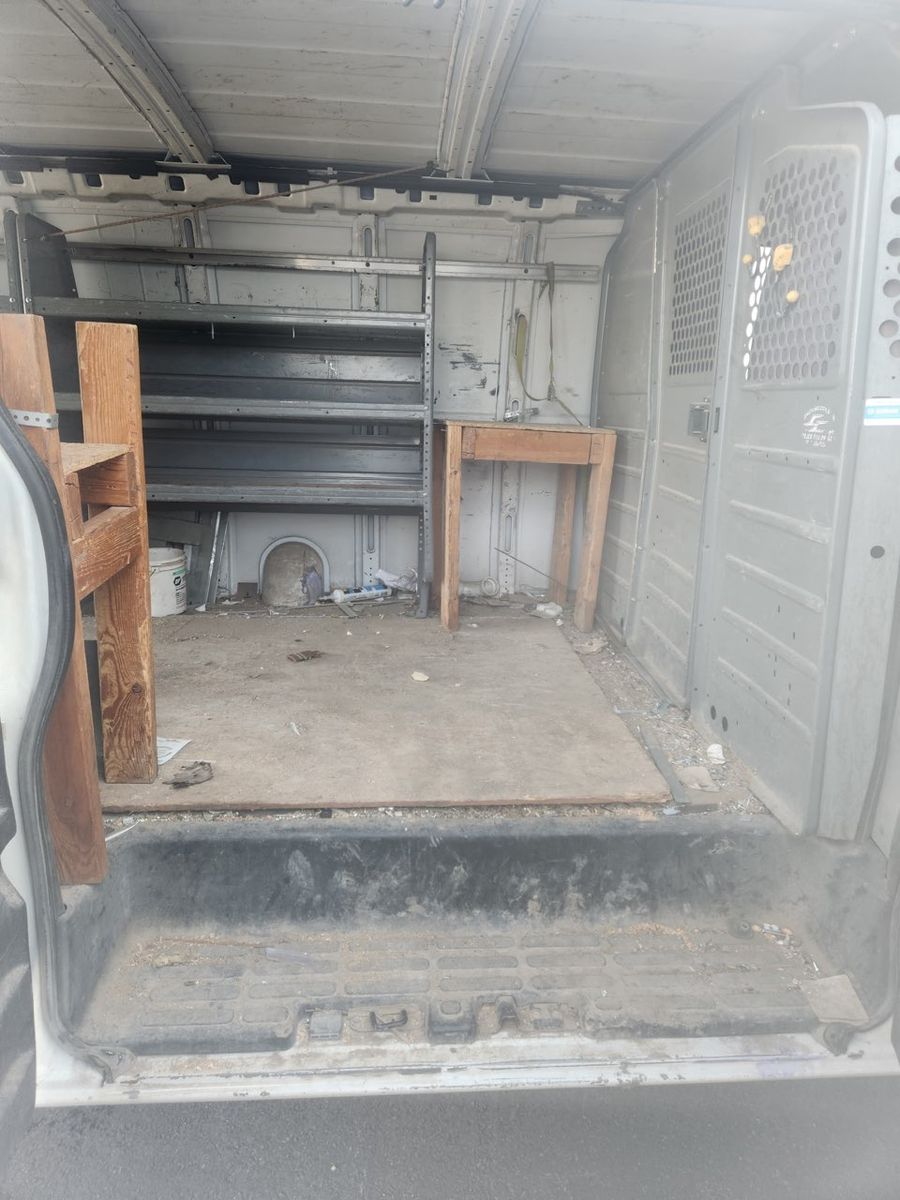 Used work van with shelving and ladder rack