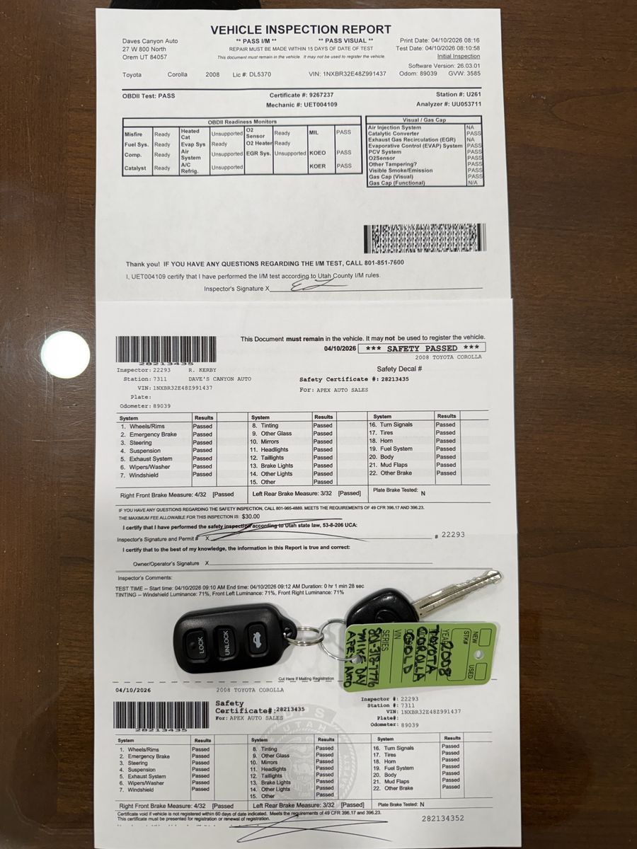 2008 Toyota Corolla CE rebuilt title. Only 89k original miles. Keyless entry. Power locks and windows. Cruise control. Runs and drives great. Includes new UT safety inspections/emissions certificates. Call or text Mike to schedule an appointment at 801-318-7776