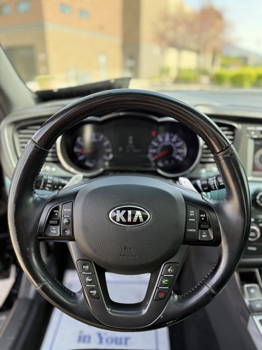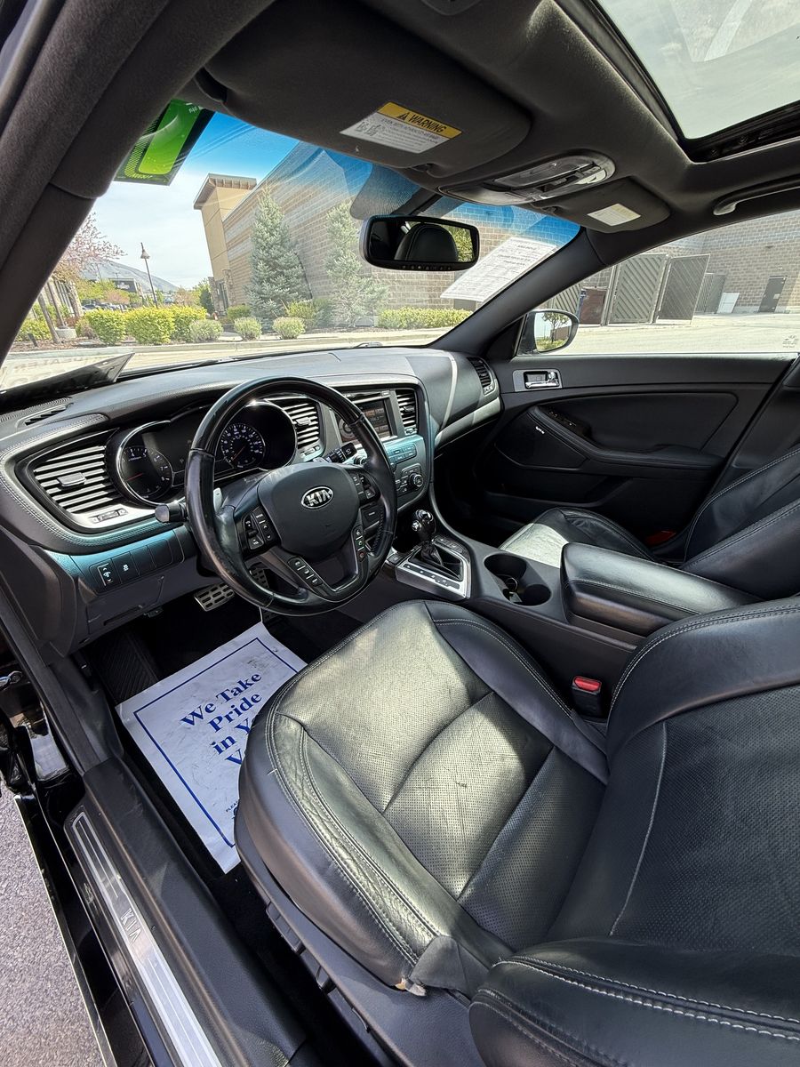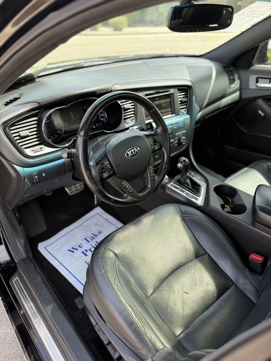 2013 KIA OPTIMA SX LIMITED TURBO 4DR SEDAN -CLEAN TITLE -CLEAN CARFAX -4 CYL TURBO ENGINE -AUTOMATIC TRANSMISSION -FWD -PADDLE SHIFTERS -STEERING WHEEL AUDIO CONTROLS -CRUISE CONTROL -PUSH TO START -BLUETOOTH -NAVIGATION -TOUCH SCREEN STEREO -BACK UP CAMERA -HEATED SEATS -AIR COOLED SEATS -REAR HEATED SEATS -BLACK LEATHER INTERIOR -ECO MODE -PANORAMIC SUNROOF -POWER SEATS -POWER WINDOWS -POWER LOCKS -POWER MIRRORS -GLOSS BLACK OEM WHEELS -ALL SEASON TIRES -NEW FRONT SHOCKS -JUST SERVICED ENGONE OIL W/ FILTERS -JUST DETAILED -MUST SEE! -COME IN AND CHECK IT OUT!