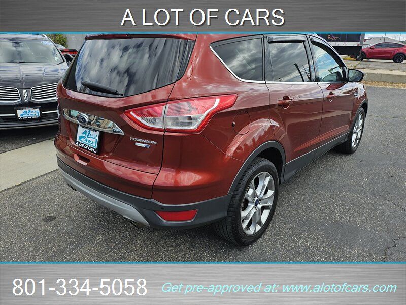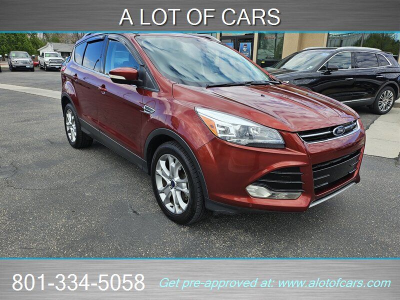 1 Owner, 4x4 Beautiful and loaded 2014 Ford Escape, Titanium. Loaded up model with leather, heated seats, self parking feautures front and rear parking sensors, large screen and backup camera and more! Burnt orange color is in good shape and so fun compared to all the others in boring colors. Runs great with the larger 2.0 Eco boost turbo motor. Tires are even near new.