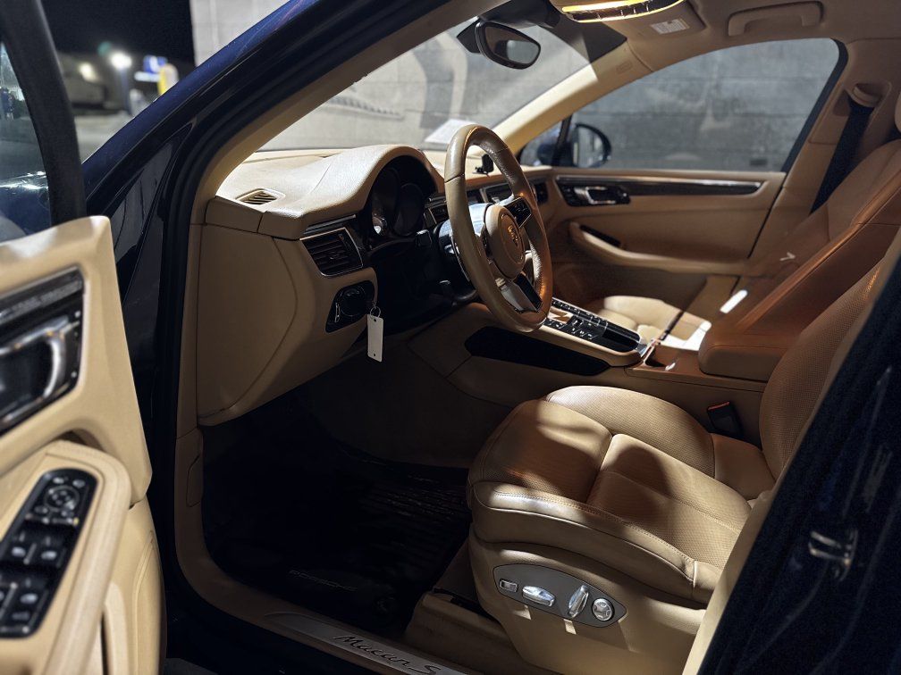 Very clean car with a brown leather interior.