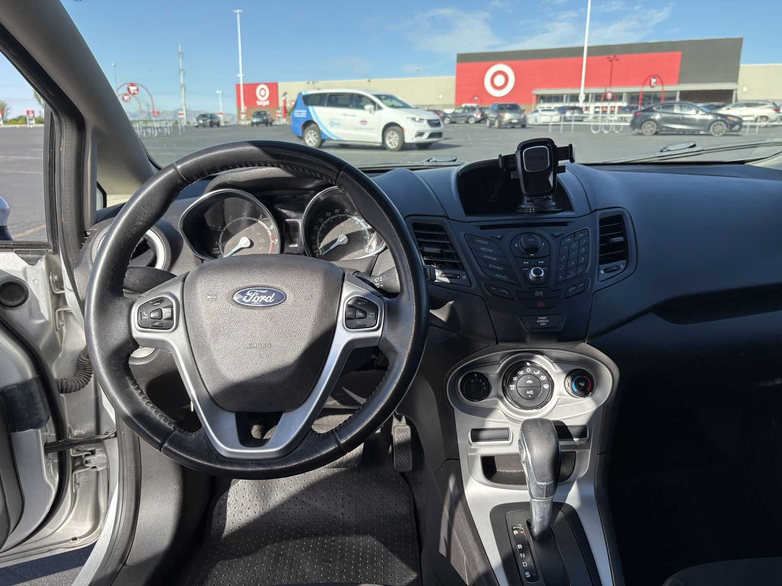 Interior: The overhead sunglasses holder is stuck in the open position due to a broken plastic clip.