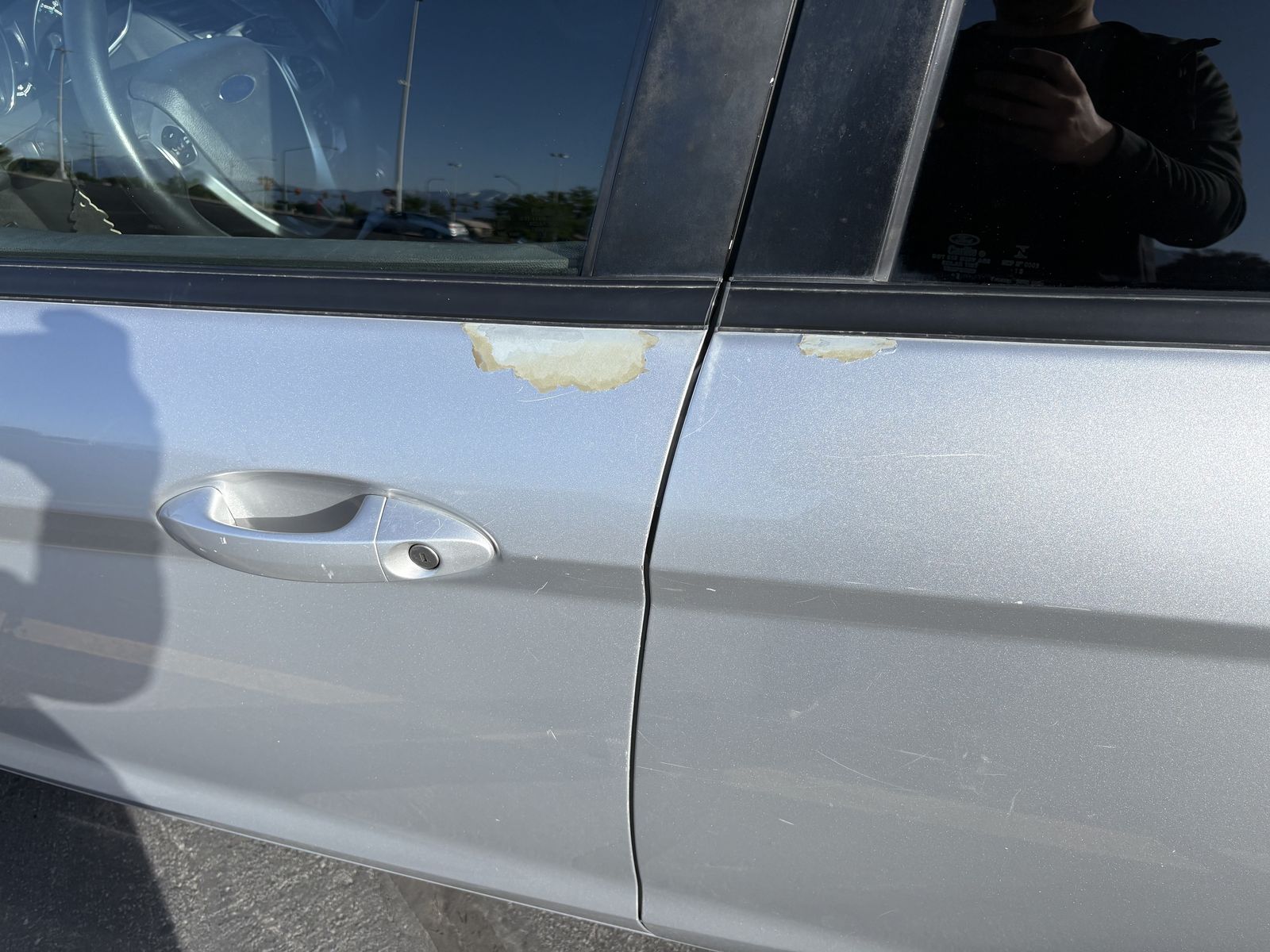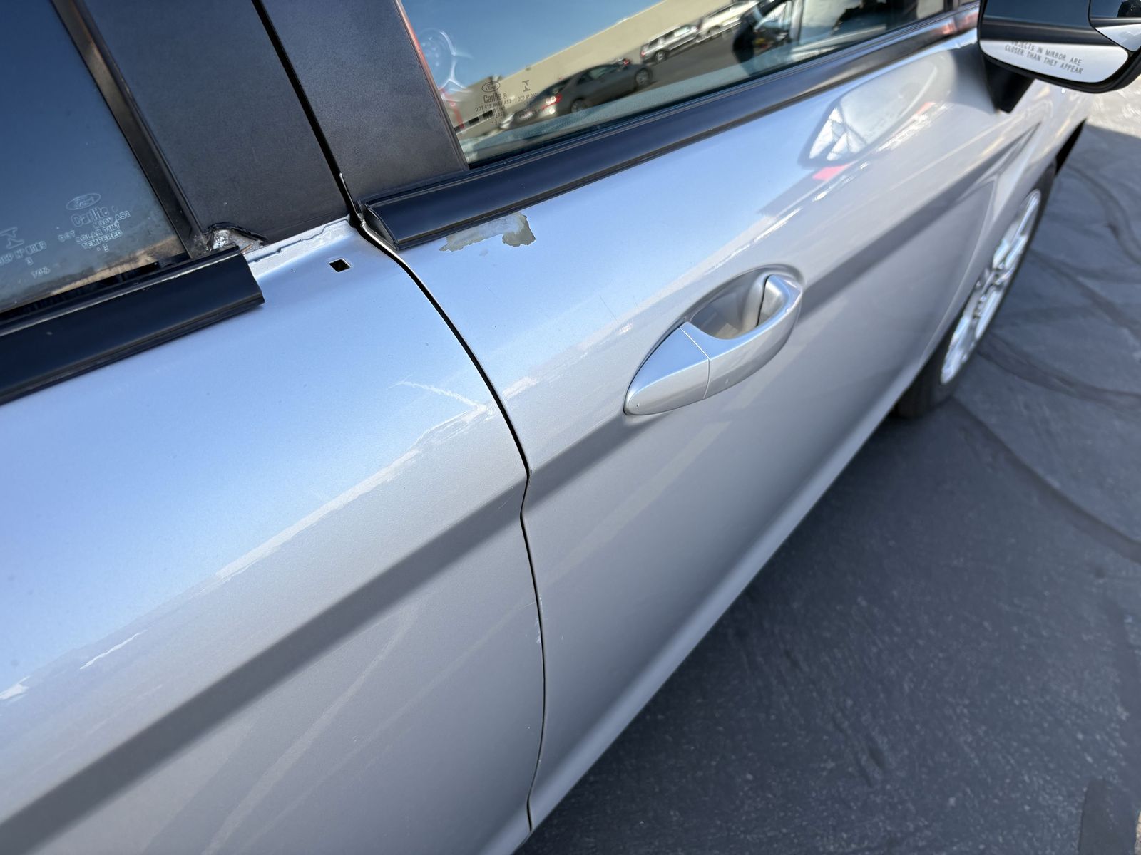 Exterior: Some paint peeling near the door handles and several scratches on the rear bumper.