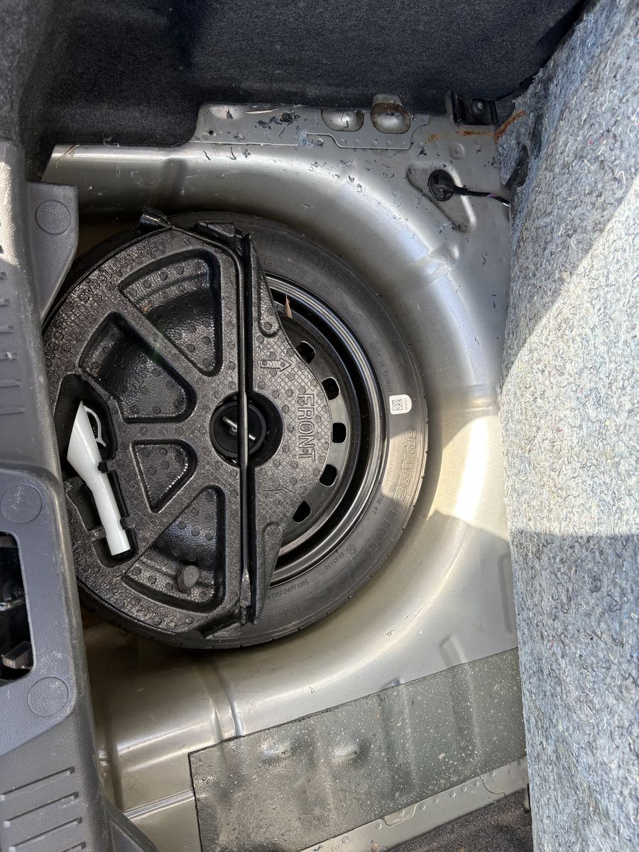 Spare Tire: There is a spare tire, but the tire iron that it came with it when I bought it is not the same size as the lug nuts. I believe it is 18mm and the lug nuts are 19mm. I always carried around a socket set in my trunk just in case I got a flat tire and had to change it.