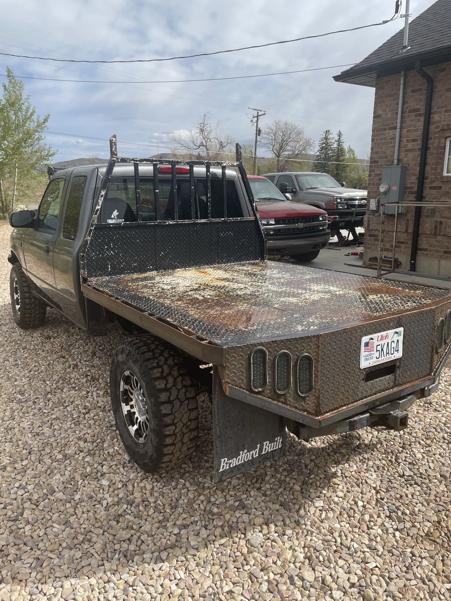 -Custom flatbed with rear winch mount, and front bumper with 12,000 pound badlands winch.