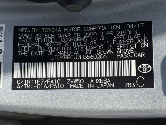 1.8L 4-Cylinder DOHC 16V VVT-i. Recent Arrival!CARFAX One-Owner.Odometer is 41790 miles below market average!Larry H. Miller Honda Murray offers this 2017 Classic Silver Metallic Toyota Prius Two FWD It is loaded with many standard and optional features including: Carpet Mat Package, Prius Two Safety Plus Package (Lane Change Assist), 1.8L 4-Cylinder DOHC 16V VVT-i, 4-Wheel Disc Brakes, 6 Speakers, ABS brakes, Air Conditioning, Alloy wheels, AM/FM radio, Auto High-beam Headlights, Automatic temperature control, Brake assist, Bumpers: body-color, CD player, Delay-off headlights, Driver door bin, Driver vanity mirror, Dual front impact airbags, Dual front side impact airbags, Electronic Stability Control, Exterior Parking Camera Rear, Fabric Seat Trim, Four wheel independent suspension, Front anti-roll bar, Front Bucket Seats, Front Center Armrest, Front reading lights, Heated door mirrors, Illuminated entry, Knee airbag, Low tire pressure warning, Occupant sensing airbag, Outside temperature display, Overhead airbag, Overhead console, Panic alarm, Passenger door bin, Passenger vanity mirror, Power door mirrors, Power steering, Power windows, Radio: Entune Audio, Rear anti-roll bar, Rear seat center armrest, Rear window defroster, Rear window wiper, Remote keyless entry, Speed control, Split folding rear seat, Steering wheel mounted audio controls, Telescoping steering wheel, Tilt steering wheel, Traction control, Trip computer, Variably intermittent wipers, and Wheels: 6.5J x 15 5-Spoke Aluminum Alloy.Awards:* 2017 KBB.com 10 Most Awarded Brands * 2017 KBB.com Best Resale Value Awards * 2017 KBB.com 5-Year Cost to Own Awards * 2017 KBB.com 10 Best Hybrid Cars Under $40,000
