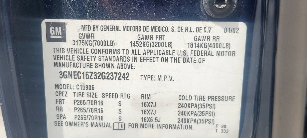 2002 Chevrolet Suburban. Still runs great, does have a small oil leak. Missing middle seats. New Battery, tires bought in 2024, only driven locally.