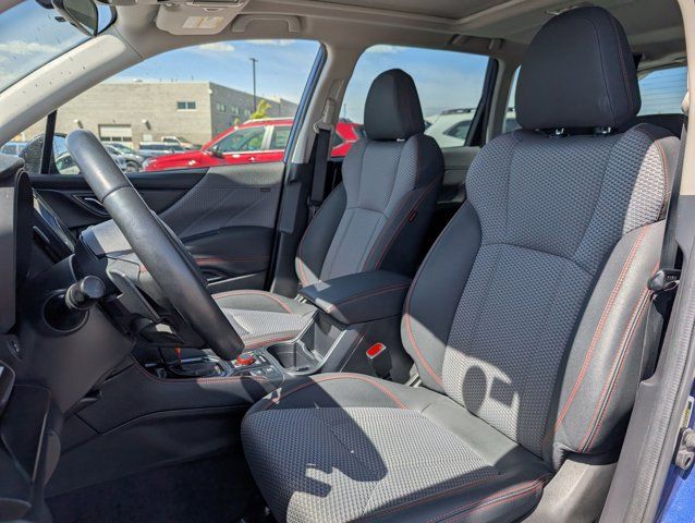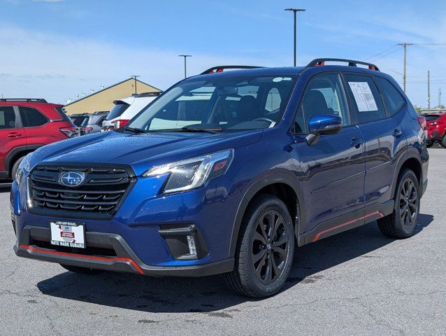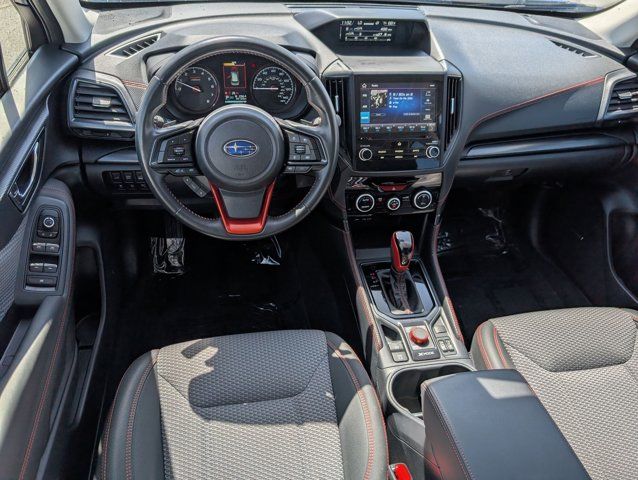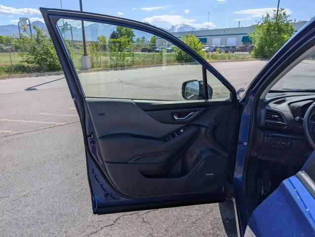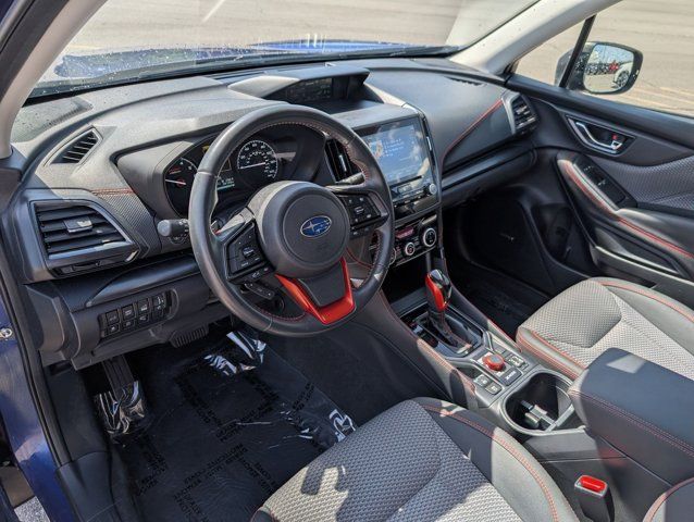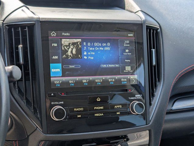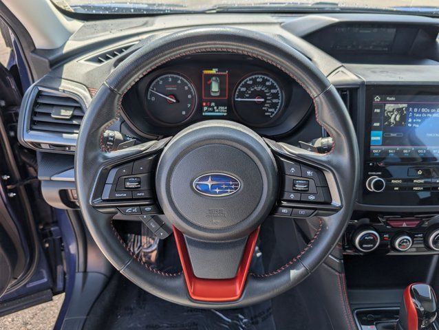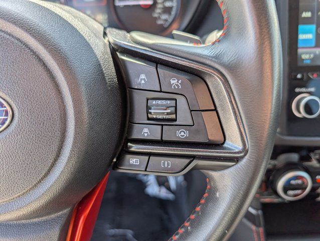 REAR BUMPER COVER -inc: Part number E771SSJ000,BODY SIDE MOLDING - SAPPHIRE BLUE PEARL -inc: Part number J101SSJ201G8,GRAY SPORT CLOTH UPHOLSTERY -inc: orange stitching,8 AUDIO W/HARMAN/KARDON & RAB & POWER REAR GATE -inc: Reverse Automatic Braking System (RAB) Power Rear Gate automatic close and height memory Radio: Subaru Starlink 8.0 Multimedia Plus System AM/FM stereo HD Radio w/single-disc CD player MP3/WMA/CRR/RW file capability multi-touch gesture high resolution display screen voice activated controls Bluetooth audio streaming hands-free phone connectivity and hands-free SMS text messaging connectivity (refer to subaru.com for cell phone compatibility) Near Field Communication (NFC) iPod control capability SiriusXM All Access radio (subscription required) and Travel Link required after) smartphone integration for AHA Android Auto Apple CarPlay Pandora and Starlink cloud applications (refer to subaru.com for app availability) USB and Over The Air (OTA) audio system update steering wheel controls for audio and Bluetooth 3.5mm auxiliary input jack and dual USB A input/charge ports harman/kardon 9-Speaker Audio Sys,SAPPHIRE BLUE PEARL,DOOR EDGE GUARDS - SAPPHIRE BLUE PEARL -inc: Part number SOA801P051G8,All Wheel Drive,Power Steering,ABS,4-Wheel Disc Brakes,Brake Assist,Brake Actuated Limited Slip Differential,Aluminum Wheels,Tires - Front Performance,Tires - Rear Performance,Temporary Spare Tire,Sun/Moonroof,Generic Sun/Moonroof,Panoramic Roof,Heated Mirrors,Power Mirror(s),Integrated Turn Signal Mirrors,Rear Defrost,Privacy Glass,Intermittent Wipers,Variable Speed Intermittent Wipers,Rear Spoiler,Power Door Locks,Daytime Running Lights,Automatic Headlights,Headlights-Auto-Leveling,LED Headlights,Automatic Highbeams,Fog Lamps,AM/FM Stereo,CD Player,Satellite Radio,MP3 Capability,Steering Wheel Audio Controls,Bluetooth Connection,Telematics,Auxiliary Audio Input,HD Radio,Smart Device Integration,Requires Subscription,MP3 Capability,Bluetooth Connection,Power Driver Seat,Bucket Seats,Heated Front Seat(s),Driver Adjustable Lumbar,Pass-Through Rear Seat,Rear Bench Seat,Adjustable Steering Wheel,Trip Computer,Power Windows,WiFi Hotspot,Leather Steering Wheel,Keyless Entry,Power Door Locks,Keyless Entry,Power Door Locks,Keyless Start,Cruise Control,Adaptive Cruise Control,Climate Control,A/C,Cloth Seats,Driver Vanity Mirror,Passenger Vanity Mirror,Driver Illuminated Vanity Mirror,Passenger Illuminated Visor Mirror,Floor Mats,Cargo Shade,Keyless Start,Smart Device Integration,Smart Device Integration,Requires Subscription,Power Door Locks,Power Windows,Trip Computer,Security System,Immobilizer,Cruise Control Steering Assist,Traction Control,Stability Control,Traction Control,Front Side Air Bag,Lane Departure Warning,Lane Keeping Assist,Lane Departure Warning,Front Collision Mitigation,Driver Monitoring,Telematics,Requires Subscription,Blind Spot Monitor,Cross-Traffic Alert,Evasion Assist,Tire Pressure Monitor,Driver Air Bag,Passenger Air Bag,Front Head Air Bag,Rear Head Air Bag,Passenger Air Bag Sensor,Knee Air Bag,Child Safety Locks,Driver Restriction Features,Back-Up Camera