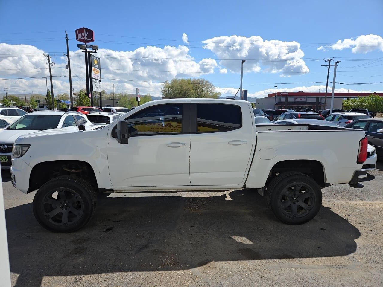 Check out this 2015 Chevrolet Colorado Crew Cab Z71 4X4. This Colorado has leather interior, heated seats, power drivers seat, power windows, power locks, cruise control, rear camera, custom wheels and more. It runs great and there are no check engine lights. It has been in a previous accident and has a branded title. If you are looking for a mid size pickup that wont break bank and runs great come check her out. 208-237-4700