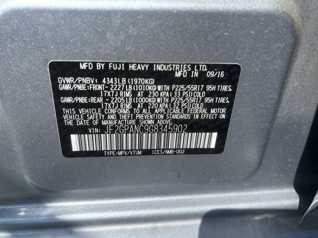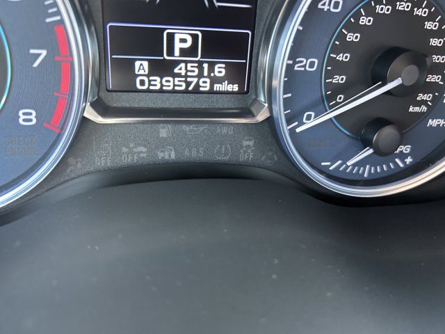 REAR BUMPER COVER -inc: Part number E771SFJ401,MOONROOF PACKAGE W/NAVIGATION/KEYLESS/EYESIGHT -inc: EyeSight System Pre-Collision Braking System Pre-Collision Brake Assist Steering Responsive Fog Lights Adaptive Cruise Control Charge-Coupled Device Cameras Lane Departure Warning Navigation System SD card map voice activated navigation controls SiriusXM NavTraffic (subscription required) and SiriusXM NavWeather (subscription required) Power Moonroof Keyless Access w/Push-Button Start PIN code access,ICE SILVER METALLIC,BLACK LEATHER-TRIMMED UPHOLSTERY,ALL WEATHER FLOOR MATS -inc: Part number J501SVA200,SUN SHADE -inc: Part number SOA3991310,REAR SEAT BACK PROTECTOR -inc: Part number J501SFJ600,All Wheel Drive,Power Steering,ABS,4-Wheel Disc Brakes,Brake Assist,Aluminum Wheels,Tires - Front Performance,Tires - Rear Performance,Temporary Spare Tire,Heated Mirrors,Power Mirror(s),Integrated Turn Signal Mirrors,Rear Defrost,Privacy Glass,Intermittent Wipers,Variable Speed Intermittent Wipers,Rear Spoiler,Power Door Locks,Fog Lamps,Daytime Running Lights,Automatic Headlights,AM/FM Stereo,CD Player,Satellite Radio,MP3 Capability,Bluetooth Connection,Telematics,Auxiliary Audio Input,HD Radio,Smart Device Integration,Requires Subscription,MP3 Capability,Steering Wheel Audio Controls,Telematics,Smart Device Integration,Requires Subscription,Bluetooth Connection,Bucket Seats,Heated Front Seat(s),Pass-Through Rear Seat,Rear Bench Seat,Adjustable Steering Wheel,Trip Computer,Power Windows,Leather Steering Wheel,Remote Trunk Release,Keyless Entry,Power Door Locks,Cruise Control,Climate Control,A/C,Leather Seats,Driver Vanity Mirror,Passenger Vanity Mirror,Floor Mats,Cargo Shade,Smart Device Integration,Back-Up Camera,Power Windows,Power Door Locks,Trip Computer,Security System,Immobilizer,Traction Control,Stability Control,Traction Control,Front Side Air Bag,Telematics,Requires Subscription,Blind Spot Monitor,Cross-Traffic Alert,Tire Pressure Monitor,Driver Air Bag,Passenger Air Bag,Front Head Air Bag,Rear Head Air Bag,Passenger Air Bag Sensor,Knee Air Bag,Child Safety Locks