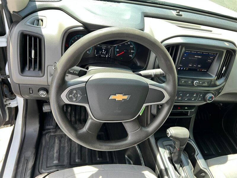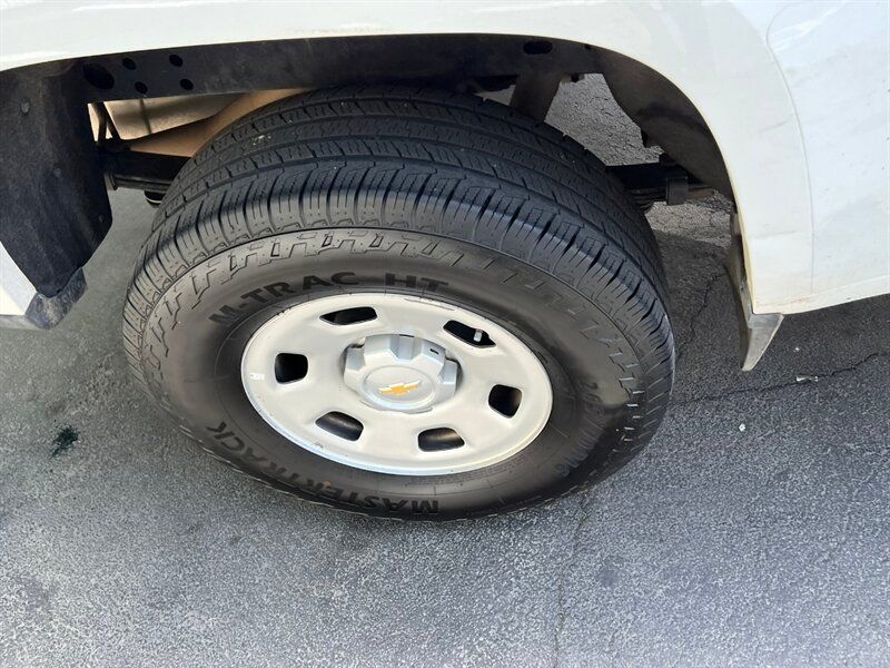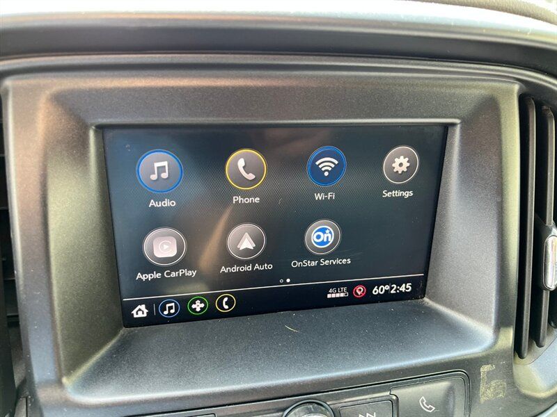 INSTALLED FEATURES: Air filtration, Front air conditioning, Front air conditioning zones: single, Airbag deactivation: occupant sensing passenger, Front airbags: dual, Side airbags: front, Side curtain airbags: front / rear, Antenna type: diversity / mast, Auxiliary audio input: Bluetooth / iPod/iPhone / jack / USB, Radio: AM/FM / touch screen display, Radio data system, Satellite radio: SiriusXM, Speed sensitive volume control, Total speakers: 6, ABS: 4-wheel, Braking assist, Electronic brakeforce distribution, Front brake type: ventilated disc, Power brakes, Rear brake type: ventilated disc, Floor mat material: carpet, Floor material: carpet, Floor mats: front / rear, Shift knob trim: urethane, Steering wheel trim: urethane, Assist handle: front / rear, Capless fuel filler system, Center console: front console with armrest and storage, Cupholders: front / rear, One-touch windows: 1, Power outlet(s): 12V front, Power steering: variable/speed-proportional, Reading lights: front, Rearview mirror: manual day/night, Steering wheel: tilt, Storage: door pockets / in dash / under rear seats, Vanity mirrors: passenger, Bumper detail: rear integrated corner step, Door handle color: black, Front bumper color: body-color, Grille color: black with chrome accents, Mirror color: black, Pickup bed light, Rear bumper color: chrome, Side door type: dual rear-hinged access, Window trim: black, Infotainment: Chevrolet Infotainment System, Infotainment screen size: 7 in., Smartphone integration: Android Auto / Apple CarPlay, Clock, Digital odometer, External temperature display, Fuel economy display: MPG / range, Gauge: oil pressure / tachometer, Instrument cluster screen size: 3.5 in., Multi-function display, Trip odometer, Warnings and reminders: low fuel level / low oil level / maintenance due, Daytime running lights, Headlights: auto delay off / auto on/off / halogen, Side mirror adjustments: manual / manual folding, 4WD selector: electronic hi-lo, 4WD type: part time, Battery: maintenance-free, Battery saver, Camera system: rearview, Check rear seat reminder, Child seat anchors: LATCH system, Programmable safety key, Rearview monitor: in dash, Emergency locking retractors: front, Front seatbelts: 3-point, Rear seatbelts: 3-point, Seatbelt force limiters: front, Seatbelt pretensioners: front, Seatbelt warning sensor: front, Driver seat manual adjustments: reclining, Driver seat power adjustments: 4 / height, Front headrests: 2 / adjustable, Front seat type: bucket, Passenger seat manual adjustments: 2 / reclining, Rear headrests: 2 / fixed, Rear seat type: jumpseats, Upholstery: cloth, Anti-theft system: vehicle immobilizer, Power door locks: anti-lockout / auto-locking, Hill holder control, Stability control, Traction control, Trailer stability control, Front shock type: twin-tube gas, Front spring type: coil, Front stabilizer bar, Front struts, Front suspension classification: independent, Front suspension type: upper and lower control arms, Rear shock type: twin-tube gas, Rear spring type: leaf, Rear suspension classification: solid live axle, Rear suspension type: multi-leaf, Electronic messaging assistance: voice operated / with read function, Hands-free phone call integration: voice operated, Wireless data link: Bluetooth, Tow hooks: front, Spare tire mount location: underbody, Spare tire size: temporary, Spare wheel type: aluminum alloy, Tire Pressure Monitoring System, Wheels: steel, Front wipers: variable intermittent, Power windows: safety reverse