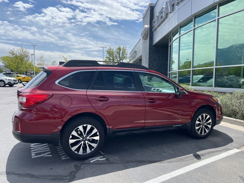 This 2016 Venetian Red Pearl Subaru Outback 3.6R AWD is well equipped and includes these features and benefits: 12 Speakers, 4-Wheel Disc Brakes, 4.111 Axle Ratio, ABS brakes, Air Conditioning, Alloy wheels, AM/FM radio: SiriusXM, Anti-whiplash front head restraints, Automatic temperature control, Brake assist, Bumpers: body-color, CD player, Driver door bin, Driver vanity mirror, Dual front impact airbags, Dual front side impact airbags, Electronic Stability Control, Emergency communication system, Exterior Parking Camera Rear, Four wheel independent suspension, Front anti-roll bar, Front Bucket Seats, Front Center Armrest w/Storage, Front dual zone A/C, Front fog lights, Front reading lights, Fully automatic headlights, harman/kardon Surround Sound Speaker System, harman/kardon® Speakers, Heated door mirrors, Heated front seats, Heated rear seats, Heated Reclining Front Bucket Seats, High-Intensity Discharge Headlights, Illuminated entry, Leather Shift Knob, Low tire pressure warning, Memory seat, Occupant sensing airbag, Outside temperature display, Overhead airbag, Overhead console, Panic alarm, Passenger door bin, Passenger vanity mirror, Perforated Leather-Trimmed Upholstery, Power door mirrors, Power driver seat, Power Liftgate, Power passenger seat, Power steering, Power windows, Radio data system, Radio: Subaru Starlink 7.0'' Multimedia Plus System, Rear anti-roll bar, Rear seat center armrest, Rear window defroster, Rear window wiper, Remote keyless entry, Roof rack, Security system, Smartphone Integration, Speed control, Speed-sensing steering, Split folding rear seat, Spoiler, Steering wheel mounted audio controls, Steering-Wheel Paddle-Shift Control Switches, Tachometer, Telescoping steering wheel, Tilt steering wheel, Traction control, Trip computer, Turn signal indicator mirrors, Variably intermittent wipers, Vehicle Information Display, and Wheels: 18'' x 7.0'' Aluminum Alloy w/Machine Finish.