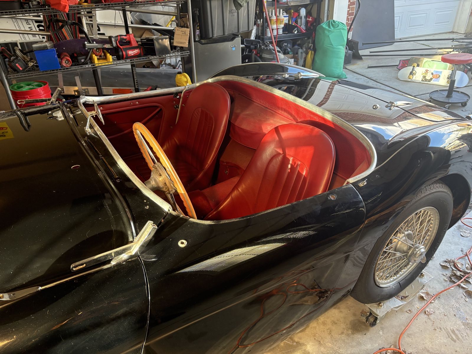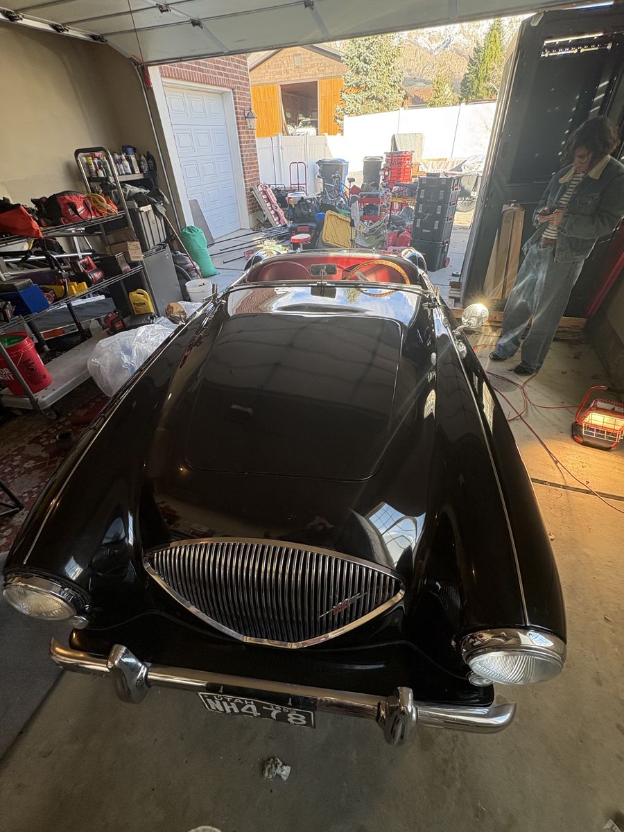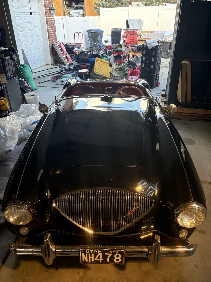 1955 Austin-Healey 100 BN1 finished in black with red interior. Owned for over 20 years by a dedicated Austin-Healey enthusiast (my father-in-law), who kept the car garaged and carefully maintained.