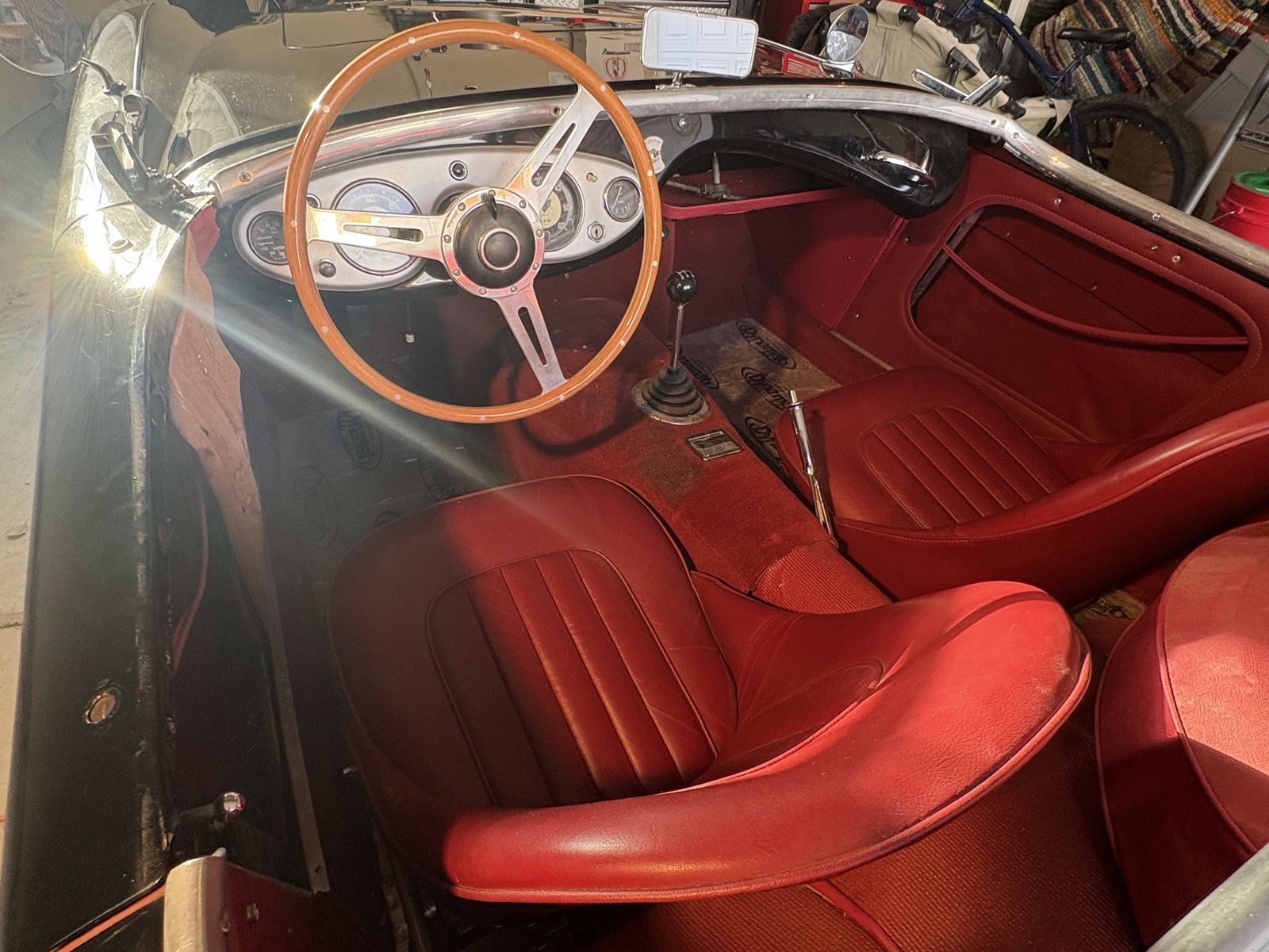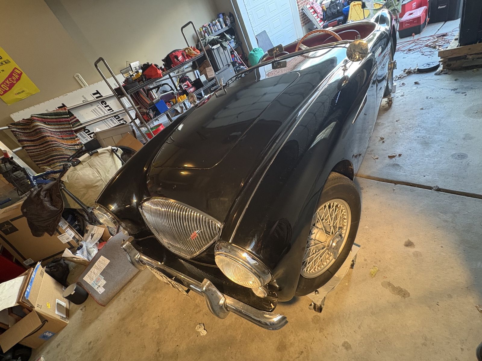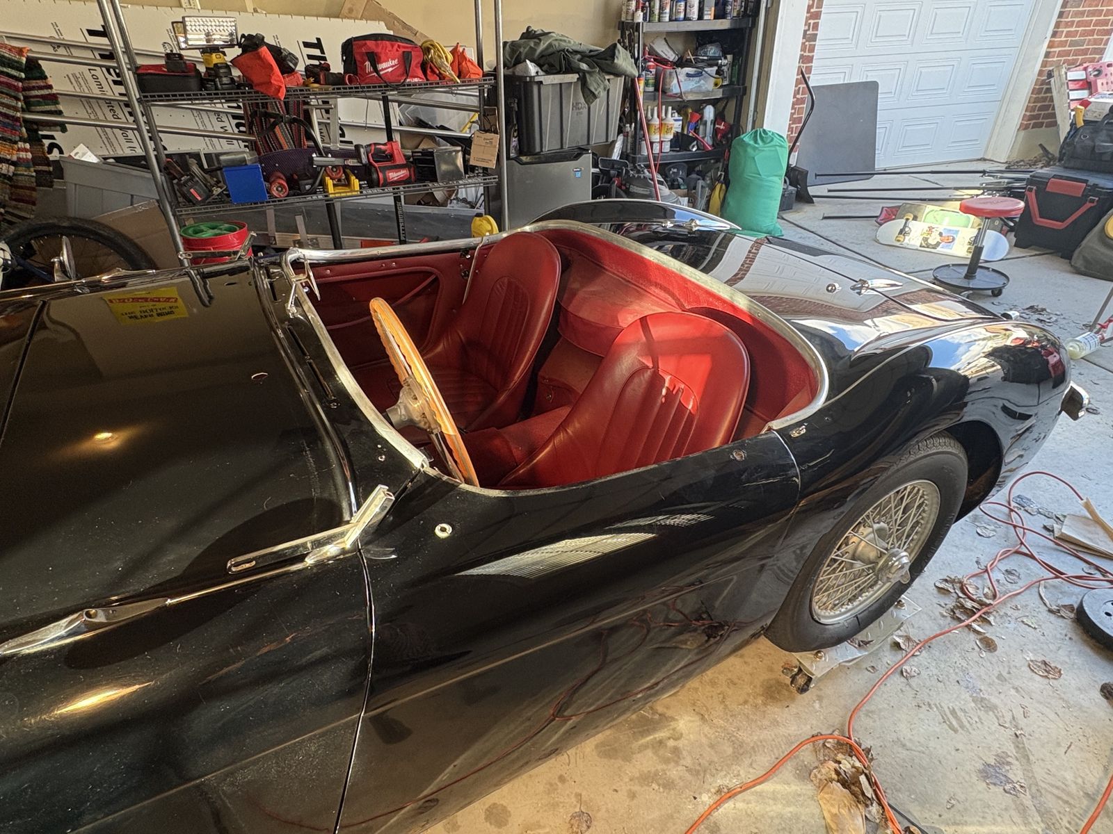 1955 Austin-Healey 100 BN1 finished in black with red interior. Owned for over 20 years by a dedicated Austin-Healey enthusiast (my father-in-law), who kept the car garaged and carefully maintained.