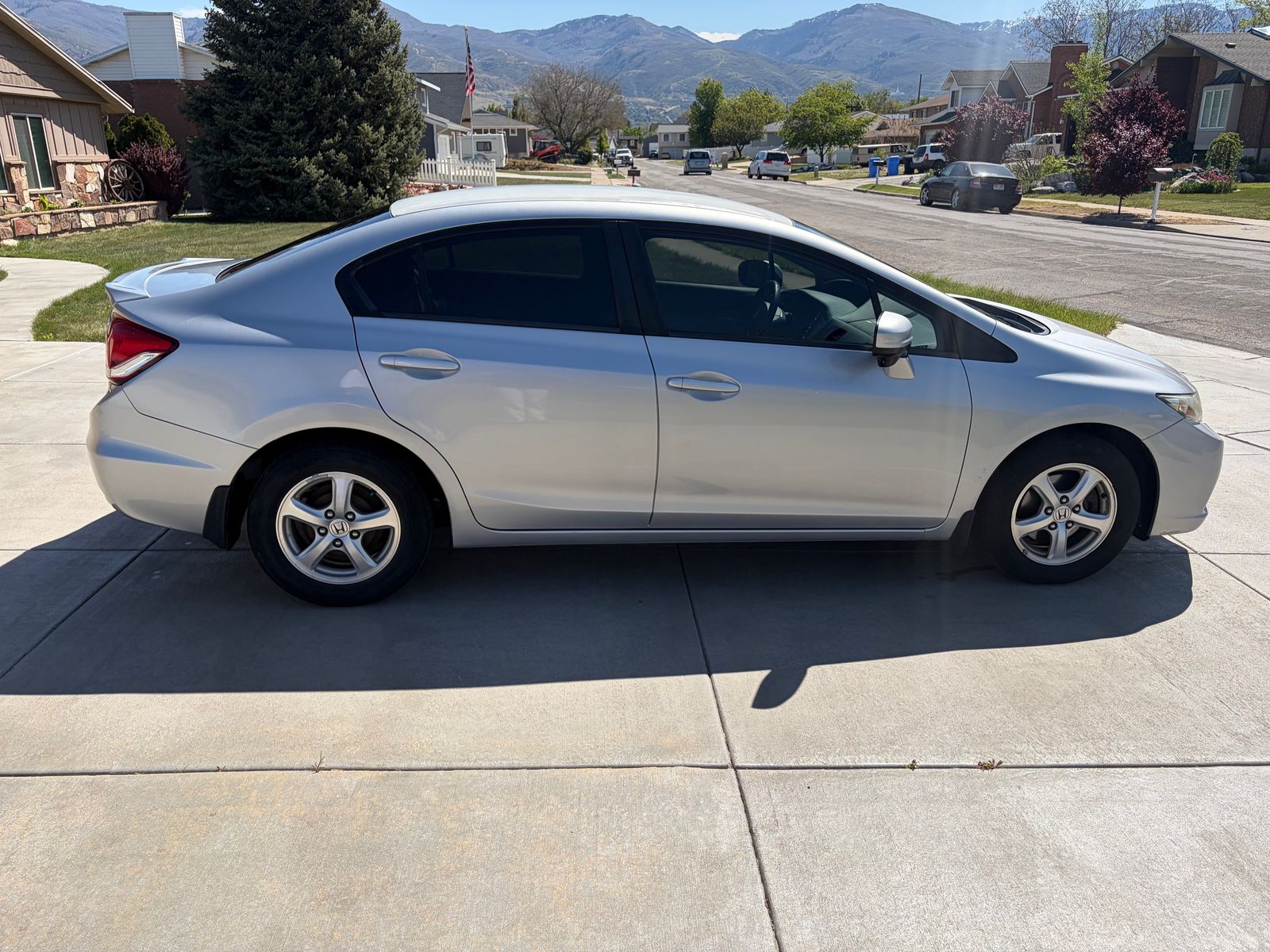 2015 Honda Civic GX. This is a great and economical car. It uses natural gas, which is a very clean fuel, and there are many fueling stations along the Wasatch front. I bought this car for my wife to commute to work. For the past few years, she has worked from home so we haven’t been using it. This car has been wonderful, super reliable and always has been serviced through Performance Honda in Bountiful using all Honda parts. It gets good fuel mileage and natural gas is cheaper than gasoline, and doesn’t fluctuate like gasoline either. We recently had new brake rotors put on it and the tires are in great shape as well. We don’t smoke and hasn't had any animals in this car. The oil has always been change by Honda and I would expect this car to last another 300000 miles. This car has no modifications and runs extremely well. It has reverse and side mirror cameras. It has never been in an accident. Calls or texts only. No scammers, if your text looks suspicious, I will not answer. $8500 OBO.