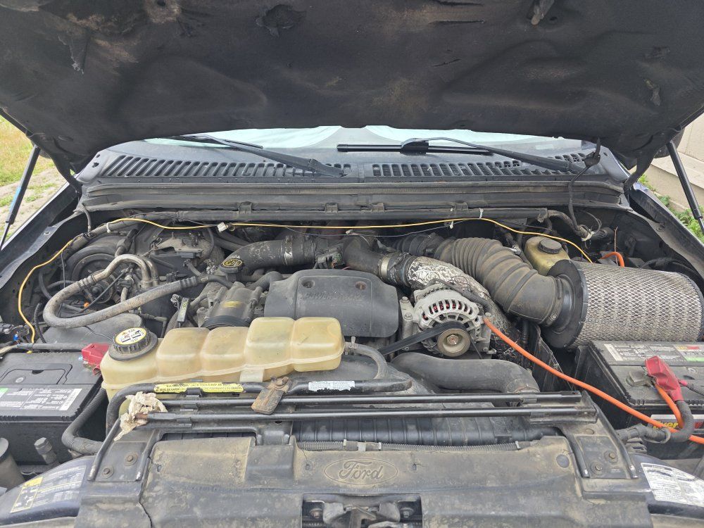 Purchased from a construction company. This was the haul truck. When with the company it had a new motor and transmission with 160k, as well as a stage 2 tow/haul kit installed. Since purchase, I have done regular maintenance, always Motorcraft preferred parts or K&N. Rotella T4 oil. Oil has about 1100 miles since last change and fuel filter has about 2500 miles since last change. Fuel filter is motorcraft, oil filter is K&N. I recently replaced all major suspension components, including the 12pc front steering assembly, sway links, tie rod ends, bushings ect, and all around shocks. Wheels and tires are from a newer super duty series, they are 18" wheels. Tires are Cooper Discovery S/T Maxx 285/65R18, about 50% tread left. Wheels are also on 6061 t6 spacers. Truck is stock other than the stock airbox being replaced with a large tractor filter. The ignition switch is currently broken as well as the starter solenoid was bad and has been removed. The construction company had installed a push button start to bypass the ignition switch. keys are still required to turn the vehicle on, but the push button operates the starter. The last thing the suspension needs is u-joints on the 4x4 shaft, at 40-45mph you can feel them shake, by 50mph it goes away. Mechanically this truck is amazing, ive had no issues. In the winter it starts up after the first glow plug cycle. Cosmetically it needs work. The instrument cluster came from a 2003, as clusters are known to fail often, and on 2002-2004 it would control the windows and radio, its been in for about 2 years with no issues. Open to offers, wont respond to spam, lowballs or hate messages. Message with more questions.