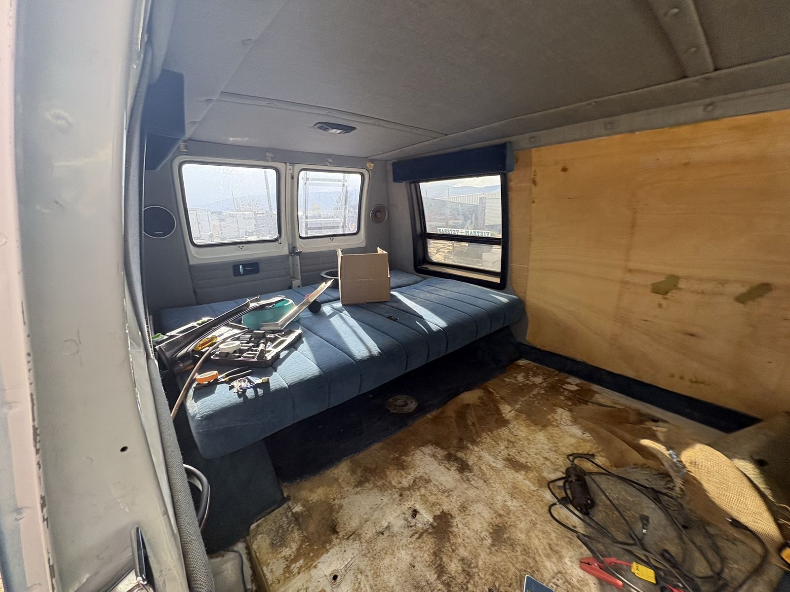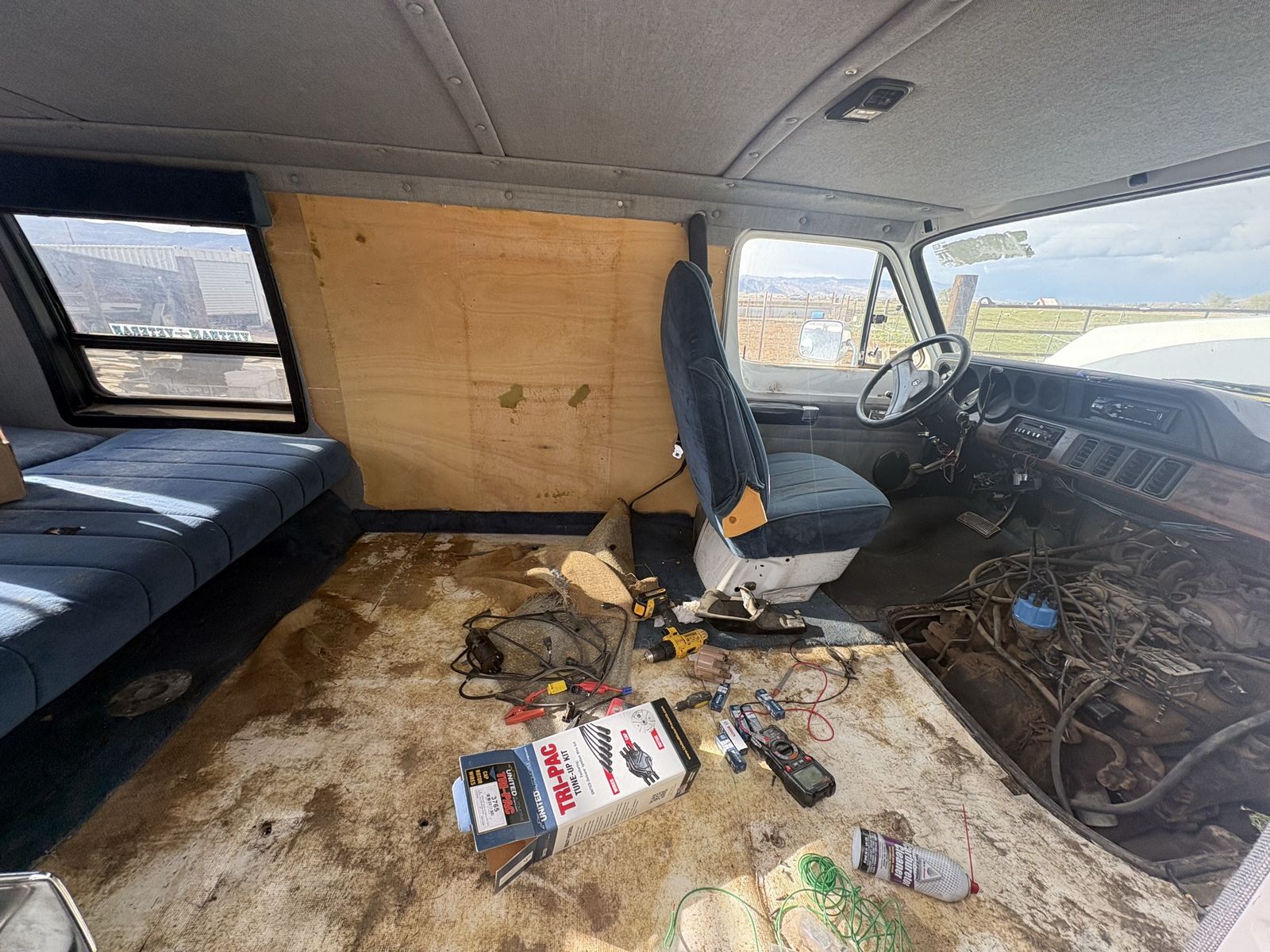 What it has: solid body, high roof, windows all around, bench/bed in the back, tune-up kit included. Good bones for a van build, farm rig, or parts pull.