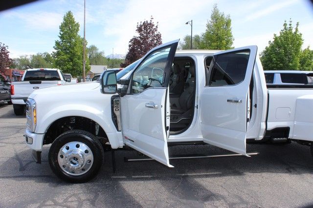 2026 FORD F450 CREW CAB, PLATINUM PLUS PACKAGE, 4WD, 6.7 HIGH OUTPUT POWERSTROKE DIESEL ENGINE, 1200 MILES!! TAN LEATHER INTERIOR, AUTOMATIC, POWER SEATS, HEATED SEATS, A/C SEATS, MEMORY SEATS, MAX RECLINE FRONT SEAT, HEATED REAR SEATS, PANORAMIC SUNROOF , 360 CAMERA, NAVIGATION, HEADS UP DISPLAY, ADAPTIVE CRUISE CONTROL, PRO POWER 2KW ON BOARD, POWER DEPLOY RUNNING BOARDS, SPRAY IN BED LINER, 5TH WHEEL AND GOOSENECK PREP PACKAGE, DUAL REAR WHEELS, FX4 OFF ROAD PACKAGE, ALLOY WHEELS. CLEAN TITLE. DL 4007 $289 DEALER DOC FEE INCLUDED IN ADVERTISED PRICE!!