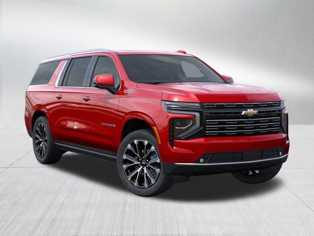 NO Dealer Addendum!Recent Arrival!4WD 4D Sport Utility Radiant Red Tintcoat 2026 Chevrolet Suburban High Country EcoTec3 6.2L V8 10-Speed Automatic with OverdriveAwards:* Car and Driver 10 Best Trucks and SUVs Car and Driver Editors' ChoiceCar and Driver, January 2017.Advanced Security Package (Glass Breakage Sensor, Self-Powered Horn Theft-Deterrent Alarm System, Vehicle Inclination Sensor, and Vehicle Interior Movement Sensor), Advanced Trailering Package (Blind Zone Steering Assist with Trailering, Hitch View with Pan/Zoom Image Adjustment, and Smart Trailer Integration Indicator), High Country Deluxe (Air Ride Adaptive Suspension, Dual-Pane Power Panoramic Sunroof, and Power-Retractable Assist Steps), Max Trailering Package (2-Speed Active Electronic AutoTrac Transfer Case, Extra Capacity Cooling System, Hill Descent Control, and Integrated Trailer Brake Controller), Premium Liner Protection Package (3rd Row All-Weather Floor Liners, All-Weather Cargo Mat, and First and Second Rows Premium Floor Liners), Technology & Entertainment Package (Rear Seat Media System), Technology Package (AutoSense Hands-Free Power Liftgate), 10 Speakers, 15 Diagonal Multi-Color Head-Up Display, 3.23 Rear Axle Ratio, 3rd Row 60/40 Power-Folding Split-Bench, 3rd row seats: split-bench, 4-Way Power Driver Lumbar Seat Adjuster, 4-Way Power Front Passenger Lumbar Seat Adjuster, 4-Wheel Disc Brakes, 8-Way Power Driver Seat Adjuster, 8-Way Power Front Passenger Seat Adjuster, ABS brakes, Adaptive suspension, Air Conditioning, Alloy wheels, AM/FM radio: SiriusXM with 360L, Apple CarPlay/Android Auto, Auto High-beam Headlights, Auto-dimming door mirrors, Auto-dimming Rear-View mirror, Auto-leveling suspension, Automatic temperature control, Bose 10-Speaker Surround with CenterPoint, Brake assist, Bright Front and Rear Door Sill Plates, Bumpers: body-color, Chrome Door Handles with Body-Color Strip, Compass, Delay-off headlights, Driver door bin, Driver vanity mirror, Dual Exhaust System, Dual front impact airbags, Dual front side impact airbags, Electronic Stability Control, Emergency communication system: OnStar Services capable, Exterior Parking Camera Rear, Four wheel independent suspension, Front anti-roll bar, Front Bucket Seats, Front Center Armrest, Front dual zone A/C, Front fog lights, Front LED Fog Lamps, Front reading lights, Fully automatic headlights, Garage door transmitter, Heads-Up Display, Heated 2nd Row Outboard Seats, Heated door mirrors, Heated Driver and Front Passenger Seats, Heated front seats, Heated Power-Adjustable Outside Mirrors, Heated rear seats, Heated Steering Wheel, Heated steering wheel, Illuminated entry, Inside Rearview Auo-Dimming Rear Camera Mirror, Interior Camera, LED Headlamps with LED Daytime Running Lamps, LED Tail Lamps, Low tire pressure warning, Magnetic Ride Control Suspension, Memory seat, Memory Settings, Navigation system: Google built-in compatibility (select service plan required, terms and limitations apply), Occupant sensing airbag, Outside temperature display, Overhead airbag, Overhead console, Panic alarm, Passenger door bin, Passenger vanity mirror, Perforated Heated and Ventilated Seats, Perforated Leather Seating Surfaces, Power door mirrors, Power driver seat, Power Liftgate, Power passenger seat, Power Release 2nd Row Bucket Seats, Power steering, Power Tilt and Telescopic Steering Column, Power windows, Power-Sliding Center Floor Console, Radio data system, Radio: 17.7 Diagonal Advanced Color LCD Display, Rain sensing wipers, Rear air conditioning, Rear anti-roll bar, Rear Power Liftgate, Rear reading lights, Rear window defroster, Rear window wiper, Remote keyless entry, Security system, SiriusXM with 360L Trial Subscription, Speed control, Speed-sensing steering, Split folding rear seat, Spoiler, Steering wheel memory, Steering wheel mounted audio controls, Tachometer, Telescoping steering wheel, Tilt steering wheel, Traction control, Trailer Camera Prov