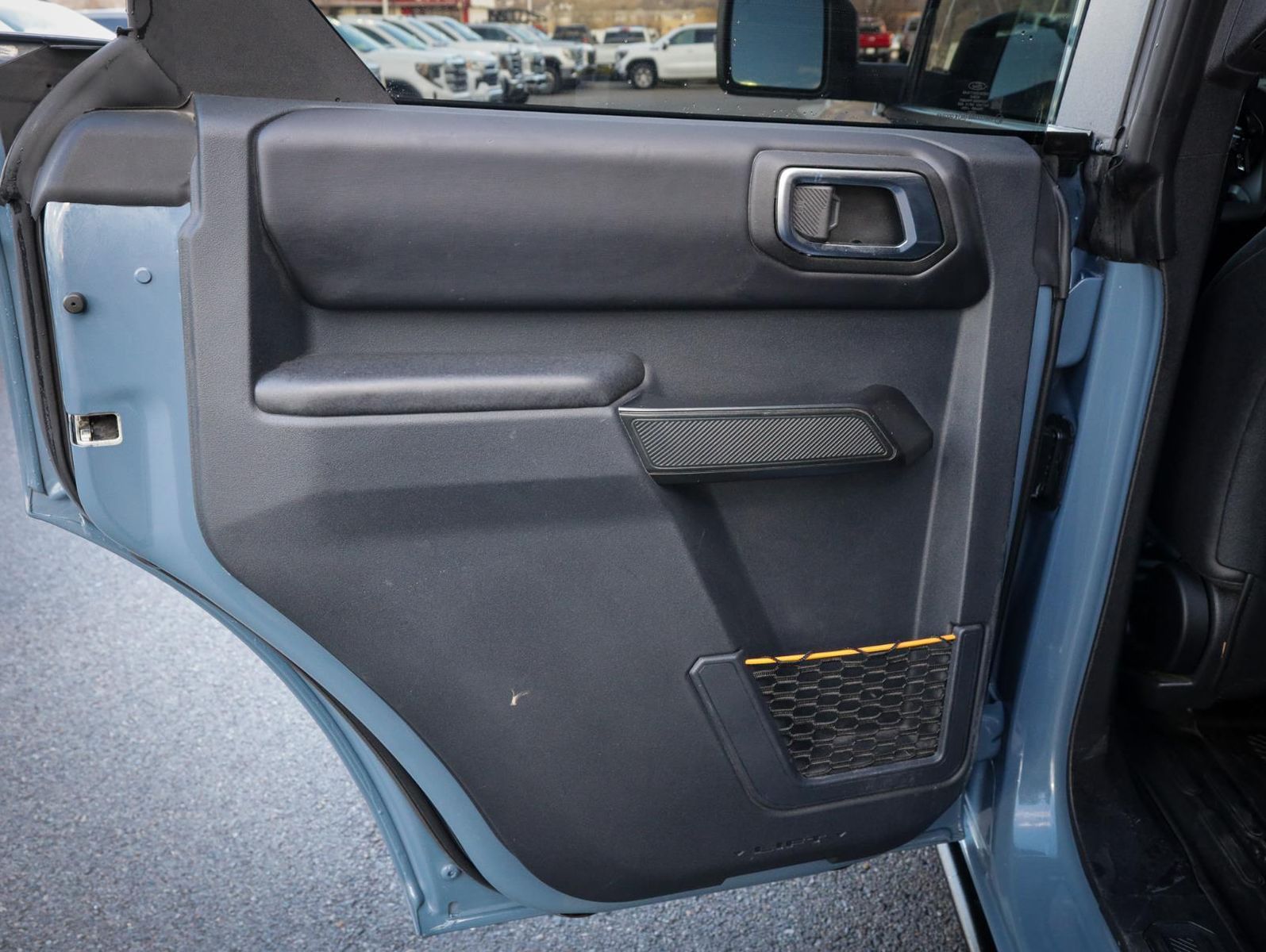 Equipment Group 334A High/lux Package ($4,575 value)Ford Co-Pilot360Auto High-Beam HeadlampsBlind Spot Information System (BLIS)Lane-Keeping SystemPre-Collision Assist with Automatic Emergency BrakingRear View CameraSasquatch Package with Non Beadlock Capable Wheels ($5,040 value)Engine Block Heater ($190 value)Race Red Paint ($295 value)All-Weather Floor Liners (without Carpet Mats) ($160 value)Includes front and rear all-weather floor liners. Deletes standard front and rear carpet mats.Hard Top w/Headliner ($2,190 value)Includes molded-in-color hard top with rear window defroster and washer, sound deadening headliner, and on-vehicle storage bag for front row top panels.Front Row Top Panels and Door Storage Bags ($400 value)Includes on-vehicle storage bag for front row top panels and doors.Dual Tops - Molded-in-Color Hard Top w/Headliner and Black Soft Top ($2,840 value)Black Onyx Leather-Trimmed/Vinyl Seats ($2,195 value)Includes Black Onyx leather-trimmed/vinyl seats, 10-way power adjustable driver's seat, 8-way power adjustable passenger's seat, second row armrest with two beverage holders, and carpet flooring.Azure Gray Metallic Tri-Coat Paint ($995 value)Trailer Tow Package ($750 value)Includes tow hitch receiver and 3,500 lbs. towing capacity.Equipment Group 332A ($1,645 value)Includes vehicle with standard equipment, 2-door Intelligent Access, ambient footwell lighting, auto-dimming rearview mirror, Connected Navigation with one year subscription included, pinch-to-zoom capability, live traffic, predictive destinations and route guidance, one box search, dual-zone electronic automatic temperature control, front row heated seats, driver and front passenger illuminated sliding visor vanity mirrors, additional power outlet in back side of center console, reverse sensing system, remote start system (automatic transmission only), auto high-beam headlamps, blind spot information system with cross-traffic alert, lane-keeping alert, lane-keeping aid, driver alert, pre-collision assist with automatic emergency braking, pedestrian detection, forward collision warning, dynamic brake support, and rear view camera with backup assist grid lines.Equipment Group 334A ($4,575 value)Includes vehicle with standard equipment, 2-door Intelligent Access, ambient footwell lighting, auto-dimming rearview mirror, Connected Navigation with one year subscription included, pinch-to-zoom capability, live traffic, predictive destinations and route guidance, one box search, dual-zone electronic automatic temperature control, front row heated seats, driver and front passenger illuminated sliding visor vanity mirrors, additional power outlet in back side of center console, auto high-beam headlamps, blind spot information system with cross-traffic alert, lane-keeping alert, lane-keeping aid, driver alert, pre-collision assist with automatic emergency braking, pedestrian detection, forward collision warning, dynamic brake support, 360 degree camera, additional sound deadening, adaptive cruise control, B&O sound system by Bang & Olufsen with 10 speakers including subwoofer, evasive steering assist, front and rear parking sensors, heated steering wheel, information on demand panel, LED sideview mirror approach lamps, LED spotlight, smart charging USB ports in dash (USB-A and USB-C), universal garage door opener, and wireless charging pad.