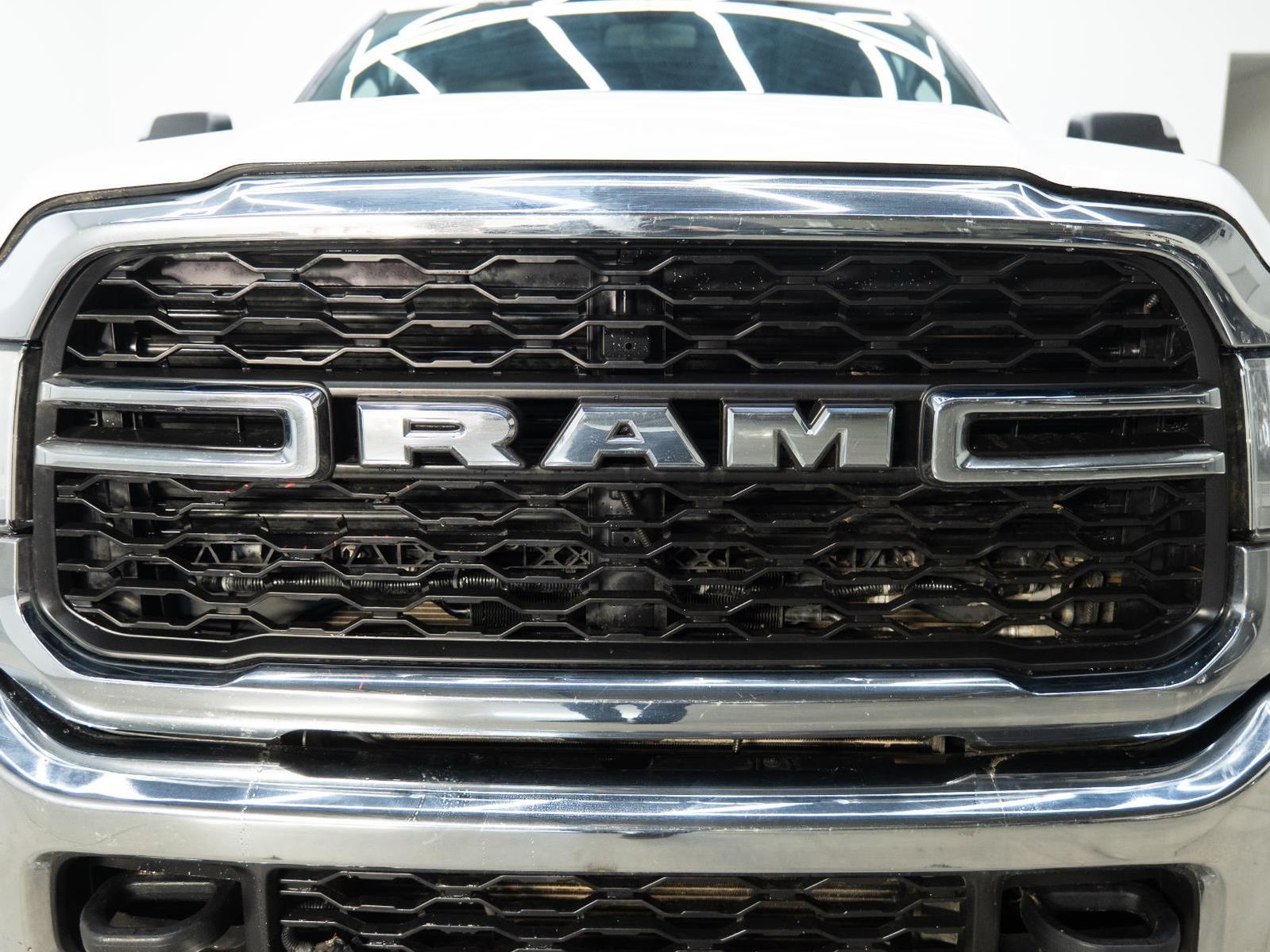 ENGINE: 6.7L I6 CUMMINS TURBO DIESEL, TRANSMISSION: 6-SPEED AUTOMATIC (68RFE), QUICK ORDER PACKAGE 2HA TRADESMAN, 3.73 AXLE RATIO, WHEELS: 18" X 8.0" STEEL CHROME CLAD, TIRES: LT275/70R18E OWL ON/OFF ROAD, BRIGHT WHITE CLEARCOAT, DIESEL GRAY/BLACK, HEAVY DUTY VINYL 40/20/40 SPLIT BENCH SEAT, GVWR: 10,000 LBS, HEAVY DUTY SNOW PLOW PREP GROUP, CHROME APPEARANCE GROUP, ELECTRIC SHIFT-ON-THE-FLY TRANSFER CASE, ANTI-SPIN DIFFERENTIAL REAR AXLE, 220 AMP ALTERNATOR, ENGINE BLOCK HEATER, TRAILER BRAKE CONTROL, TOW HOOKS, POWER ADJUST & HEATED BLACK TOW MIRRORS, FRONT LICENSE PLATE BRACKET, MOPAR SPRAY IN BEDLINER, I/P MOUNTED AUXILIARY SWITCHES, MANUFACTURER'S STATEMENT OF ORIGIN, 115V AUXILIARY FRONT POWER OUTLET