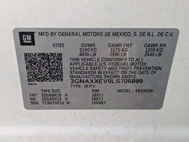 ENGINE 1.5L TURBO DOHC 4-CYLINDER SIDI VVT (170 hp [127.0 kW] @ 5600 rpm 203 lb-ft of torque [275.0 N-m] @ 2000 - 4000 rpm) (STD),TIRES P225/60R18 ALL-SEASON BLACKWALL (STD),ADAPTIVE CRUISE CONTROL - CAMERA,CONFIDENCE & CONVENIENCE II PACKAGE includes (BGP) Driver Confidence III Package and (ZQ3) Driver Convenience II Package content,SEATS HEATED REAR OUTBOARD POSITIONS,SAFETY ALERT SEAT,AUDIO SYSTEM CHEVROLET INFOTAINMENT 3 PLUS SYSTEM 8 DIAGONAL HD COLOR TOUCHSCREEN AM/FM stereo Bluetooth audio streaming for 2 active devices Apple CarPlay and Android Auto capable voice recognition in-vehicle apps cloud connected personalization for select infotainment and vehicle settings. (STD),DRIVER CONVENIENCE II PACKAGE includes (UVD) heated steering wheel (AG2) front passenger 8-way power seat adjuster with power lumbar (KU1) ventilated driver seat (KU3) ventilated front passenger seat and (KA6) heated rear seats,SEAT VENTILATED DRIVER,PREMIER PREFERRED EQUIPMENT GROUP includes standard equipment,SEAT ADJUSTER FRONT PASSENGER 8-WAY POWER WITH 2-WAY POWER LUMBAR,JET BLACK PERFORATED LEATHER-APPOINTED SEAT TRIM,SUMMIT WHITE,SEATS FRONT BUCKET (STD),HD SURROUND VISION,SEAT VENTILATED FRONT PASSENGER,TRANSMISSION 6-SPEED AUTOMATIC ELECTRONICALLY-CONTROLLED WITH OVERDRIVE includes Driver Shift Control (STD),WHEELS 18 (45.7 CM) ALUMINUM (STD),DRIVER CONFIDENCE III PACKAGE includes (UV2) HD Surround Vision (KSG) Adaptive Cruise Control - Camera and (HS1) Safety Alert Seat,AXLE 3.87 FINAL DRIVE RATIO,STEERING WHEEL HEATED,LICENSE PLATE FRONT MOUNTING PACKAGE,Rear Parking Aid,Blind Spot Monitor,Cross-Traffic Alert,Lane Departure Warning,Lane Keeping Assist,Front Collision Mitigation,Front Collision Warning,Automatic Highbeams,Turbocharged,All Wheel Drive,ABS,4-Wheel Disc Brakes,Aluminum Wheels,Tires - Front All-Season,Tires - Rear All-Season,Temporary Spare Tire,Automatic Headlights,Automatic Highbeams,Fog Lamps,Privacy Glass,Heated Mirrors,Power Mirror(s),Integrated Turn Signal Mirrors,Remote Trunk Release,Power Liftgate,Hands-Free Liftgate,AM/FM Stereo,Bluetooth Connection,Smart Device Integration,Satellite Radio,Requires Subscription,Bluetooth Connection,WiFi Hotspot,Bucket Seats,Leather Seats,Heated Front Seat(s),Power Driver Seat,Driver Adjustable Lumbar,Power Driver Seat,Driver Adjustable Lumbar,Pass-Through Rear Seat,Rear Bench Seat,Mirror Memory,Seat Memory,Floor Mats,Floor Mats,Leather Steering Wheel,Adjustable Steering Wheel,Steering Wheel Audio Controls,Power Windows,Power Windows,Power Windows,Power Door Locks,Keyless Entry,Power Door Locks,Remote Engine Start,Keyless Start,Cruise Control,Universal Garage Door Opener,Security System,Security System,MP3 Capability,Auxiliary Audio Input,MP3 Capability,Auxiliary Audio Input,MP3 Capability,Auxiliary Audio Input,Climate Control,Multi-Zone A/C,A/C,Rear Defrost,Power Outlet,Auto-Dimming Rearview Mirror,Driver Vanity Mirror,Passenger Vanity Mirror,Driver Illuminated Vanity Mirror,Passenger Illuminated Visor Mirror,Front Collision Mitigation,Front Collision Warning,Traction Control,Stability Control,Daytime Running Lights,Driver Air Bag,Passenger Air Bag,Front Side Air Bag,Front Head Air Bag,Rear Head Air Bag,Passenger Air Bag Sensor,Telematics,Requires Subscription,Rear Parking Aid,Back-Up Camera,Blind Spot Monitor,Front Collision Warning,Front Collision Mitigation,Cross-Traffic Alert,Lane Departure Warning,Lane Keeping Assist,Child Safety Locks,Driver Restriction Features,Tire Pressure Monitor
