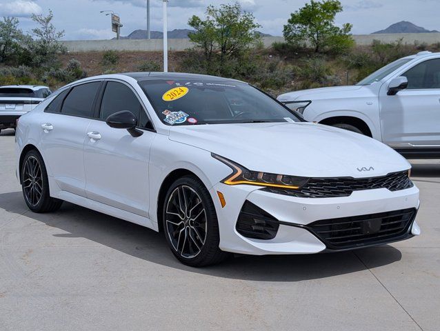 Se habla espanol.This 2024 Kia K5 GT is a true standout in its class, offering an unparalleled blend of style, performance, and cutting-edge technology. With its sleek exterior design, powerful turbocharged engine, and a host of premium features, this vehicle is the perfect choice for the discerning driver who demands excellence.- 1 Owner- Bluetooth- USB Port(s)- Zero Accidents- GT1 Package- Active Sound Design- Bose Premium Audio- Automatic temperature control- Front dual zone A/C- Rear window defroster- Memory Driver's Seat & Outside Mirrors- Power Front Passenger Seat- Smart Key w/ Push Button and Remote Start- Steering wheel mounted audio controls- Navigation-Based Smart Cruise Control - Curve- Smart Cruise Control w/Stop & GoBoasting a 2.5L turbocharged engine that delivers an impressive 290 horsepower, the 2024 Kia K5 GT offers an exhilarating driving experience. The 8-speed dual-clutch transmission provides lightning-fast shifts, while the front-wheel-drive configuration ensures exceptional handling and control. With an EPA-estimated 24 city/32 highway mpg, this vehicle delivers impressive fuel efficiency without sacrificing performance.The interior of the 2024 Kia K5 GT is a true oasis of luxury and technology. Heated and ventilated sport bucket seats, a Bose premium audio system, and a state-of-the-art navigation system are just a few of the premium features that elevate the driving experience. The vehicle's advanced safety technologies, including Forward Collision Avoidance-Assist and Parking Collision Avoidance-Assist, provide added peace of mind on the road.As a Kia Certified Pre-Owned vehicle, this 2024 K5 GT has undergone a rigorous 165-point inspection and comes with a comprehensive warranty package. This includes a 12-month/12,000-mile Platinum Coverage warranty, a 120-month/100,000-mile powertrain warranty, and additional benefits such as roadside assistance and rental car reimbursement.Don't miss your chance to experience the exceptional performance, unparalleled features, and unbeatable value of this 2024 Kia K5 GT. Visit our showroom today and let us demonstrate why this vehicle is the perfect choice for the discerning driver.