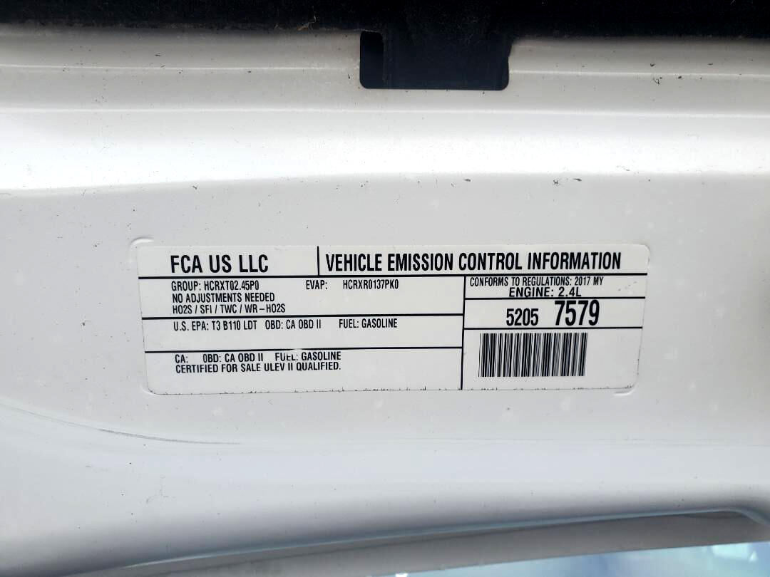 Deep Tinted Glass,Leather Steering Wheel,1 LCD Monitor In The Front,16.1 Gal. Fuel Tank,160 Amp Alternator,1886# Maximum Payload,2 Seatback Storage Pockets,3 12V DC Power Outlets,3.73 Axle Ratio,4 Speakers,4-Way Passenger Seat -inc: Manual Recline and Fore/Aft Movement,5.0"" Touchscreen Display,50 State Emissions,95-Amp/Hr 700CCA Maintenance-Free Battery w/Run Down Protection,Aero-Composite Halogen Headlamps w/Delay-Off,Air Filtration,Airbag Occupancy Sensor,Analog Appearance,Black Bodyside Moldings,Black Door Handles,Black Grille,Black Side Windows Trim and Black Front Windshield Trim,Block Heater,Body-Colored Front Bumper,Body-Colored Power Heated Side Mirrors w/Manual Folding,Body-Colored Rear Bumper,Brake Actuated Limited Slip Differential,Cargo Compartment Trim,Cargo Space Lights,Cargo Van Group,Clearcoat Paint,Cruise Control w/Steering Wheel Controls,Day-Night Rearview Mirror,Delayed Accessory Power,Delete 2nd Row Side Curtain Air Bags,Delete Rear Seating,Driver And Front Passenger Armrests,Driver And Passenger Visor Vanity Mirrors,Driver Foot Rest,Driver Knee Airbag,Dual Stage Driver And Passenger Front Airbags,Dual Stage Driver And Passenger Seat-Mounted Side Airbags,Engine Oil Cooler,Engine: 2.4L I4 MultiAir,Fade-To-Off Interior Lighting,Front And Rear HD Anti-Roll Bars,Front Cupholder,Front Disc/Rear Drum Brakes w/4-Wheel ABS- Front Vented Discs- Brake Assist and Hill Hold Control,Front License Plate Bracket,Front Map Lights,Front Only Vinyl/Rubber Floor Covering,Front-Wheel Drive,Full Cloth Headliner,Full Overhead Console w/Storage- Conversation Mirror and 3 12V DC Power Outlets,Galvanized Steel/Aluminum Panels,Gas-pressurized shock absorbers,Heavy Duty Suspension,Hydraulic Power-Assist Steering,Instrument Panel Bin- Covered Dashboard Storage- Interior Concealed Storage- Driver And Passenger Door Bins,Integrated Roof Antenna,Integrated Voice Command w/Bluetooth,LED Brakelights,Locking Glove Box,Low Tire Pressure Warning,Manual Adjustable Front Head Restraints,Manual Air Conditioning,Manual Tilt/Telescoping Steering Column,Media Input Hub (USB & AUX),Multi-Link Rear Suspension w/Coil Springs,Outboard Front Lap And Shoulder Safety Belts -inc: Height Adjusters and Pretensioners,Outside Temp Gauge,Radio w/Seek-Scan- Clock and Speed Compensated Volume Control,Rear Child Safety Locks,Rear Cupholder,Rear Doors - No Glass,Side Impact Beams,Single Stainless Steel Exhaust,Steering Wheel Mounted Audio Controls,Streaming Audio,Strut Front Suspension w/Coil Springs,Tires: P215/55R16XL BWS AS,Towing Equipment -inc: Trailer Sway Control,Urethane Gear Shifter Material,Variable Intermittent Wipers,Vinyl Door Trim Insert,GVWR: 2-447 kgs (5-395 lbs),Wheels w/Black Accents,Tire Mobility Kit,Cargo Features -inc: Tire Mobility Kit,Immobilizer