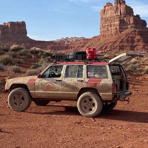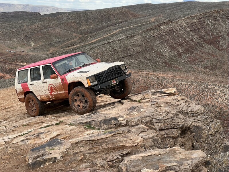 Lifted 3 inches and fenders clearanced. Fully bedlined, so no more Rocky Mountain pinstripes. Limited slip diffs are a huge plus. Rust free cherokee. This Jeep was built for reliability. 200-500 miles of off roading and she’ll bring you home every time. I’ve only ever had the fuel pump go out on me in the 3 years I’ve had it. A ton of parts have been replaced for preventative measures. I used it both as a weekend overlanding rig and a daily driver from Sandy to Orem. It’s got a p.a. system hooked up to the radio and I use it to blast the Jurassic park theme.