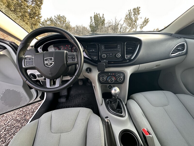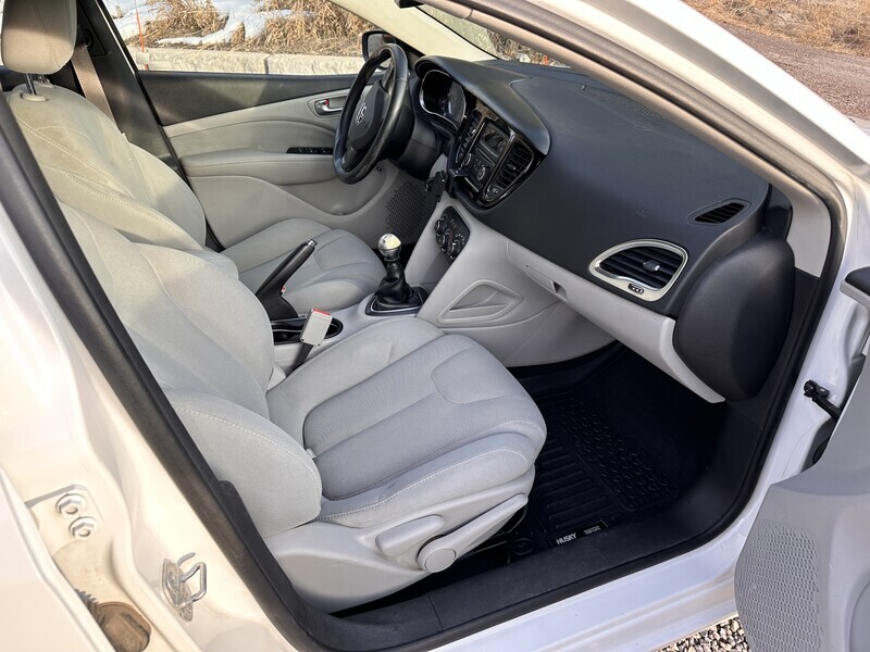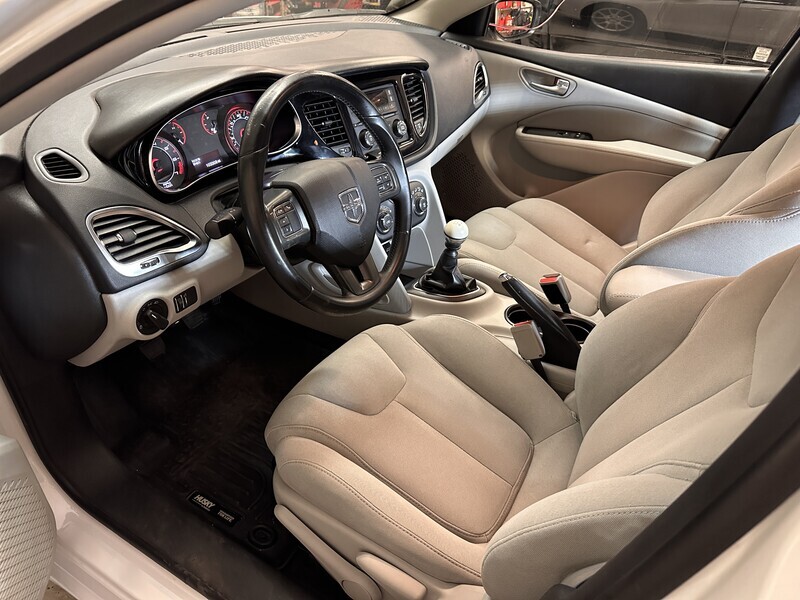 2013 Dodge Dart SXT with manual transmission with a 1.4L Turbo engine. The car is very clean. It has snow tires on it and is ready for winter driving. The car has A/C, driving lights, CD player radio with axillary input, rear seat folds down for pass through stowage, storage under front passenger seat.