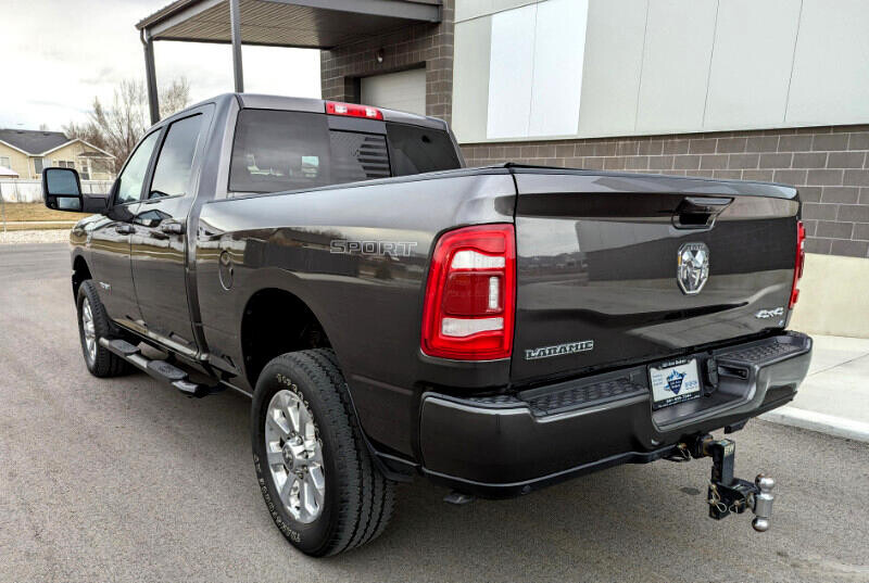 2023 RAM 2500 Laramie Sport 4X4 6.7L DIESEL short bed crew cab with brand new tires! This 6 passenger leather truck has it all! It's extremely clean inside and out and will spoil you when pulling a trailer or just going for a drive. It has leather heated and cooled front seats, heated steering wheel, massive touch screen, lane assist, collision avoidance, towing lane assist, towing bling spot monitoring, remote start, proximity key-less entry, power windows, power seats, power locks, power mirrors, power folding mirrors, power telescoping mirrors, side lighting mirrors, power rear window, steering wheel audio controls, cruse control, Bluetooth, Android Auto and Apple Carplay, HD radio, AM/FM, auto high beam headlights, pre loaded trailer package with factory drop in goose ball and 5th wheel ready. It has spray in bed liner, LED bed lights, after market running boards and tri-fold bed cover along with all weather rubber molded floor mats, and so much more!! The sport hood is a nice add on, plus this truck has the paint to match bumpers. With only 16,800 miles it has plenty of factory bumper to bumper warranty remaining. Clean title, clean CARFAX! No accidents, No stains, No smoke, No smells, No dents, No issues!We have been selling top quality vehicles to happy customers for over 20 years. We have a 4.9 google review because we aren't your typical used car dealership, check out what some of our customers have to say about us on google reviews. We believe in honesty and transparency so that's why we offer a free CARFAX on every vehicle we own. We don't have hidden fees! With only 3 employees we are often in and out of the office throughout the day, so please call ahead and we will make sure someone is here for you anytime Mon-Sat 9 am-7 pm. We can even meet you after hours if you call to schedule it. Call Trevor 801-529-7244, Lora 801-529-6967 or Carson 385-418-7373. We are a small family owned dealership thats committed to selling top quality vehicles at honest prices by keeping our overhead low and passing those savings onto our valued customers. You can find more inventory @ www.lsautodeals.com You'll LOVE how we do business with no hidden fees, no games, no special financing requirements... Just good honest deals! If this isn't the right truck for you, then give us a call and let us be your personal Auto Broker and we'll find you the right one!Trevor 801-529-7244 * Lora 801-529-6967 * Carson 385-418-7373 Visit L&S Auto Brokers online at lsautodeals.com to see more pictures of this vehicle or call us at 801-529-7244 today to schedule your test drive.