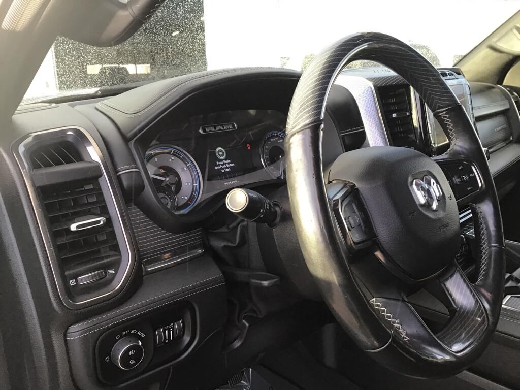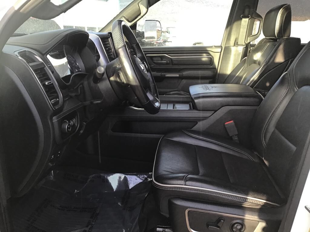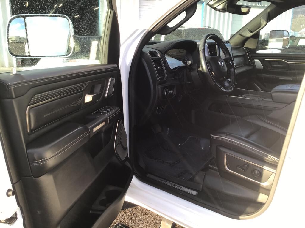 Quick Order Package 28M Limited,Body Color Bumper Group: Body Color Front Bumper; Body Color Rear Bumper with Step Pads,Trailer Tow Group: Trailer Brake Control; Black Trailer Tow Power Mirrors; Trailer Brake Control; Power Chrome Trailer Tow Mirrors,Dual-Pane Panoramic Sunroof,Multi-Function Tailgate,RamBox Cargo Management System,Tri-Fold Tonneau Cover,Anti-Spin Differential Rear Axle,33 Gallon Fuel Tank,Trailer Brake Control,275/55R20 OWL All Season Tires,SiriusXM Guardian smart device and keyfob engine start control,Apple CarPlay/Android Auto smart device mirroring,Ventilated driver and front passenger seats,Integrated navigation system with voice activation,Blind spot warning,Heated steering wheel,Uconnect w/Bluetooth handsfree wireless device connectivity,First and second-row sliding and tilting glass sunroof with express open/close activation sunshade,Leather front seat upholstery,Driver seat with 8-way directional controls,Front passenger seat with 8-way directional controls,RamBox integrated pickup box storage,Keyfob trunk control,12 inch primary LCD display,4G LTE Wi-Fi Hot Spot mobile hotspot internet access,ParkView rear mounted camera,Brake assist system,Cruise control with steering wheel mounted controls,Heated driver and front passenger seats,Primary monitor touchscreen,Rear collision warning,Driver seat power reclining, lumbar support, cushion tilt, fore/aft control and height adjustable control,Part and full-time 4WD,EcoDiesel 3L V-6 diesel direct injection, DOHC, intercooled turbo, diesel, engine with 260HP,Front wireless smart device charging,Smart key with hands-free access and push button start,Keyfob air suspension control,Bluetooth wireless audio streaming,Dual-zone front climate control,Adaptive Front-lighting System directionally adaptive headlights,Auto high-beam headlights,Sentry Key immobilizer,Alpine speakers,SiriusXM Traffic real-time traffic,SiriusXM Guardian vehicle integrated emergency SOS system,Trailer brake controller,Trailer sway control,External memory control,Internet radio capability,9 USB ports,Configurable instrumentation gauges,Electronic stability control system with anti-roll,Hill start assist,Leather rear seat upholstery,Automatic climate control,ParkSense front and rear parking sensors,Automatic suspension ride control with driver control,LED daytime running lights,LED brake lights,Rain detecting wipers