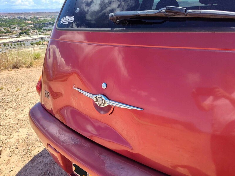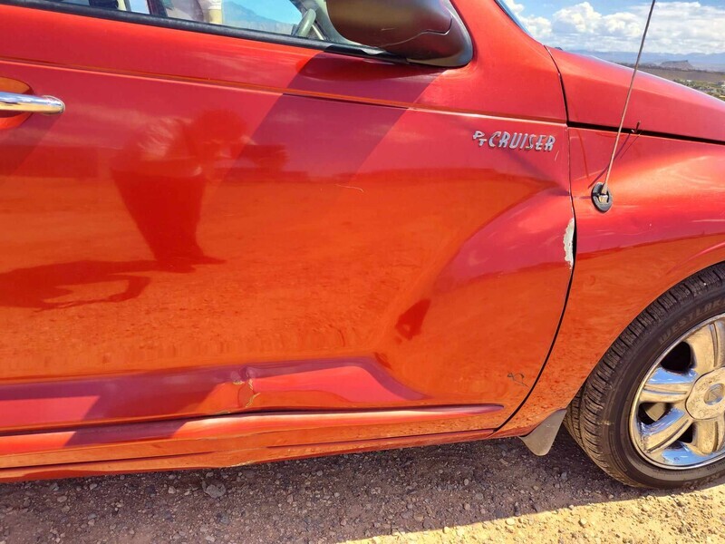 Condition: This 2003 Chrysler PT Cruiser is being sold as a fixer-upper. It has general exterior damage, including scratches and minor dents, but nothing compromising its functionality.