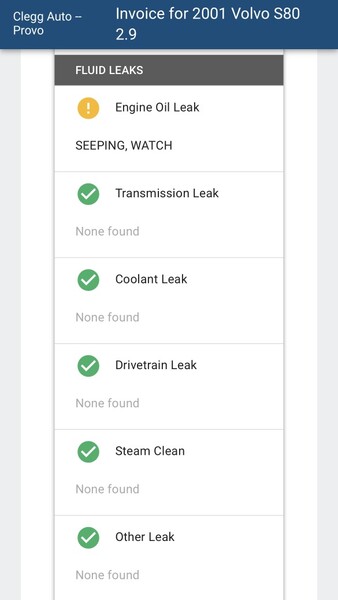 There has been an engine oil leak for at least the past 3 years but I haven’t seen any leaking and every time I go in, they say it is fine but to watch it.