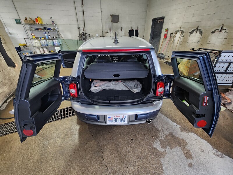 2010 mini cooper clubman. This is a fun little lightweight sporty car that'll get great gas mileage and would be a great car year round! The A/C blows cold and the heat works. Just put brand new wheels and tires on the car. They have less than 500 miles on them. The wheels are ceramic coated. Car just had the oil changed