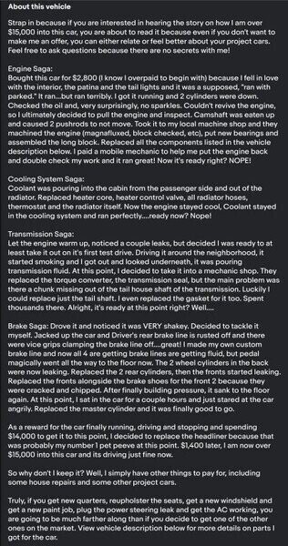 Full disclosure: Spent $18,000 to convert what should have been a parts car into a solid project for someone to finish. I know I won't get my full money back, but I got 4 other projects that I want to sink money into, so, it's time to sell this one.