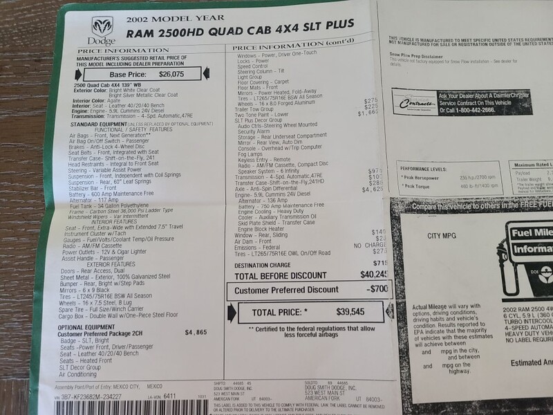 Factory invoice, window sticker, maintenance records