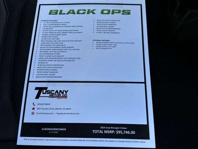 Black Clearcoat 2024 Jeep Wrangler Willys 4WD 8-Speed Automatic 3.6L V6 24V VVT Price includes $44,122 of dealer added accessories.