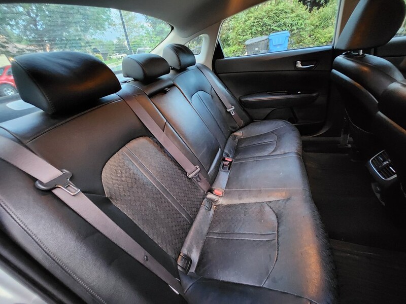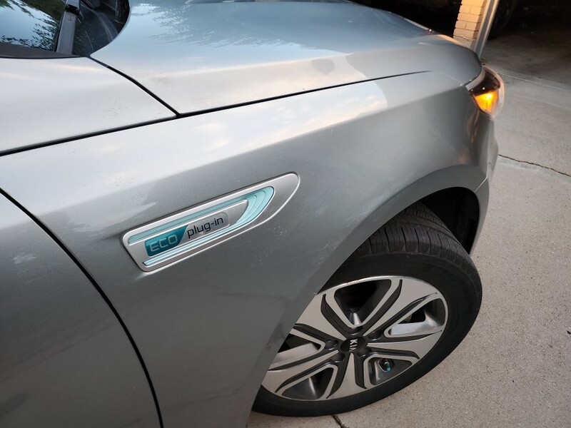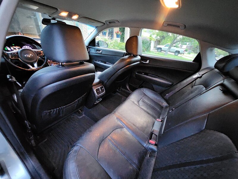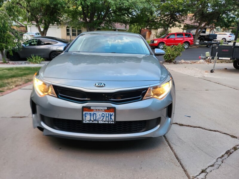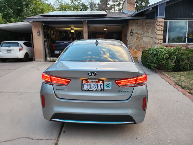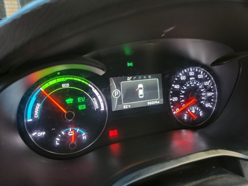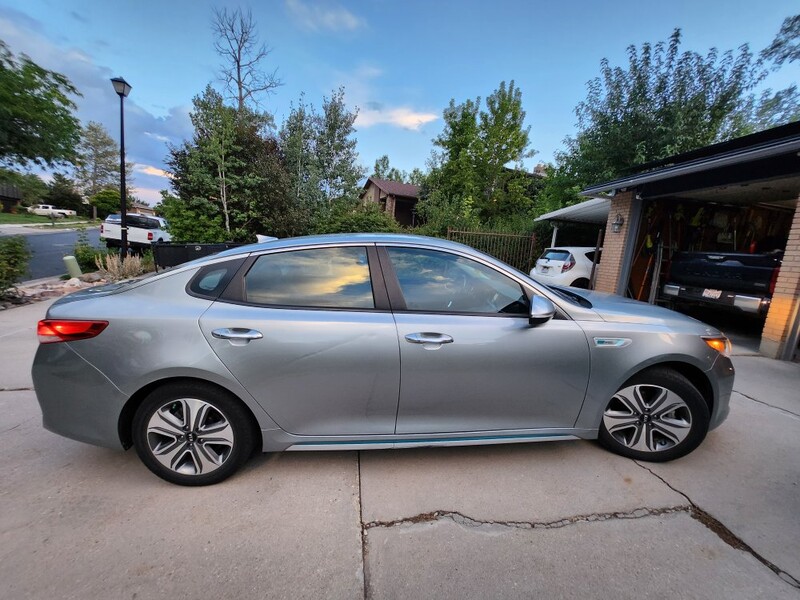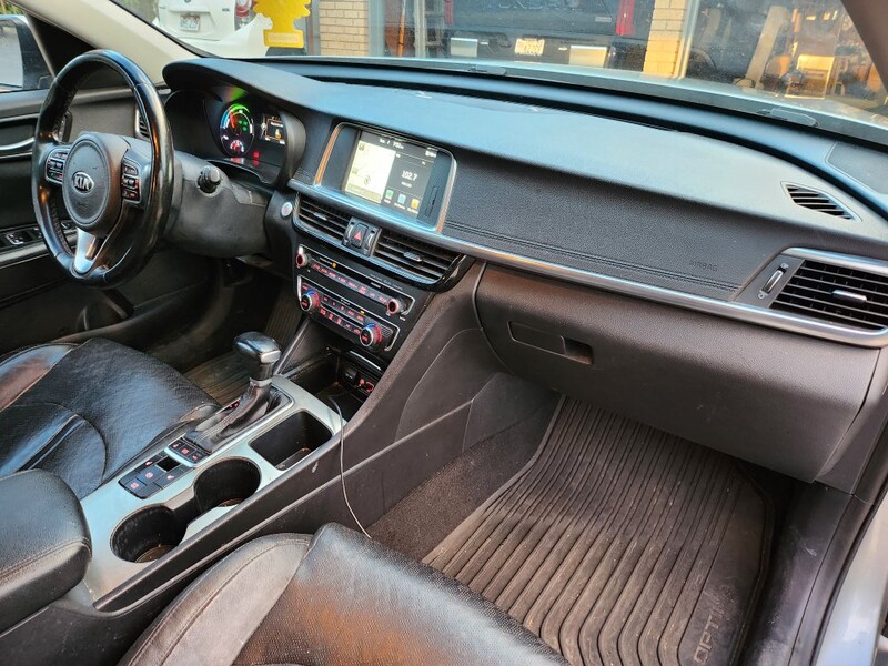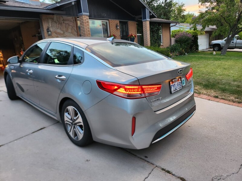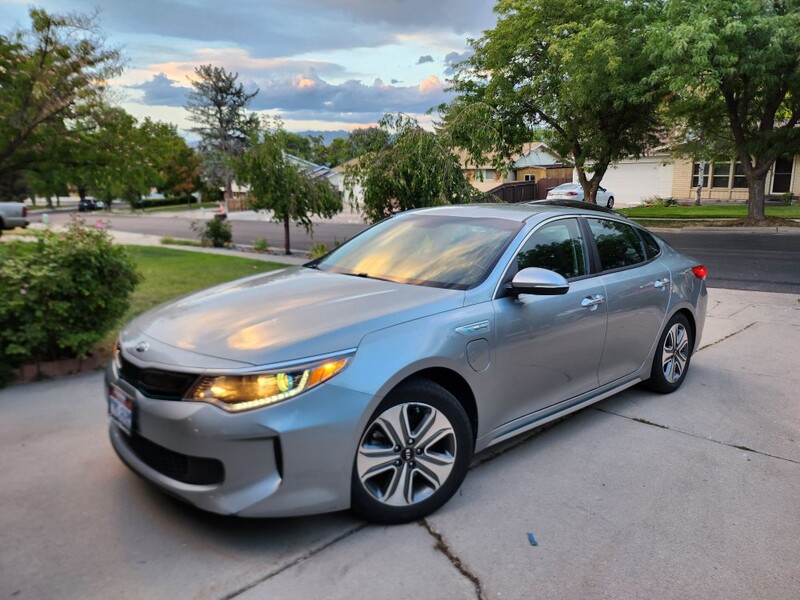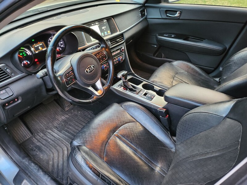 This 2018 Optima ex plug-in hybrid goes 22 miles on Electric, then switches to the hybrid system and gets 40 mpg. We average 100 mpg because we drive Electric around town mostly and charge at home and rarely fill up the gas tank. It has memory driver seat, all leather interior, heated seats, automatic windows, android auto/apple play, usb chargers front and back, navigation, am/fm radio. It has sport and economy modes. It is a fun car to drive. Has a few dings and small scratches on the exterior. The inside is excellent.