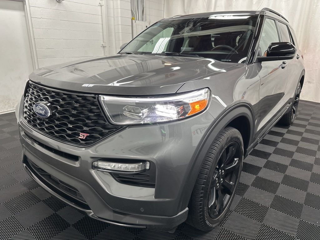 2024 Ford Explorer ST with 13078 miles! ST HIGH PKG, ST STREET PKG, TECHNOLOGY PKG, NAVIGATION, BACKUP CAMERA, HEATED AND COOLED FRONT LEATHER SEATS, HEATED REAR LEATHER SEATS, HEATED STEERING WHEEL, DUAL CLIMATE, REAR CLIMATE, MOONROOF, PARKING AID, BLINDSPOT MONITOR, LANE DEPARTURE/ASSIST, FORWARD COLLISION, 3RD ROW 6 PASSENGER SEATING, REMOTE ENGINE START, POWER LIFTGATE, WIRELESS PHONE CHARGER, ALLOY WHEELS, WIFI, B&O SOUND, BLUETOOTH, SIRIUS XM, APPLE CARPLAY, ANDROID AUTO, USB, USBC.