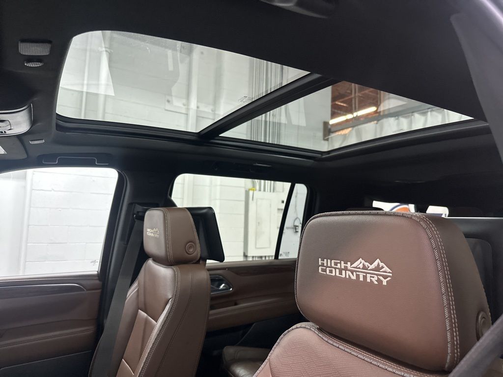 2023 Chevrolet Suburban High Country with 102904 miles! NAVIGATION, BACKUP CAMERA, HEATED AND COOLED FRONT LEATHER SEATS, HEATED REAR LEATHER SEATS, HEATED STEERING WHEEL, DUAL CLIMATE, REAR CLIMATE, REAR ENTERTAINMENT, MOONROOF, PARKING AID, BLINDSPOT MONITOR, LANE DEPARTURE/ASSIST, FORWARD COLLISION, HEADS UP DISPLAY, 3RD ROW 7 PASSENGER SEATING, REMOTE ENGINE START, POWER LIFTGATE, WIRELESS PHONE CHARGER, POWER RUNNING BOARDS, ALLOY WHEELS, HEATED EXTERIOR MIRRORS, WIFI, BOSE SOUND, BLUETOOTH, SIRIUS XM, APPLE CARPLAY, ANDROID AUTO, USB, USBC.