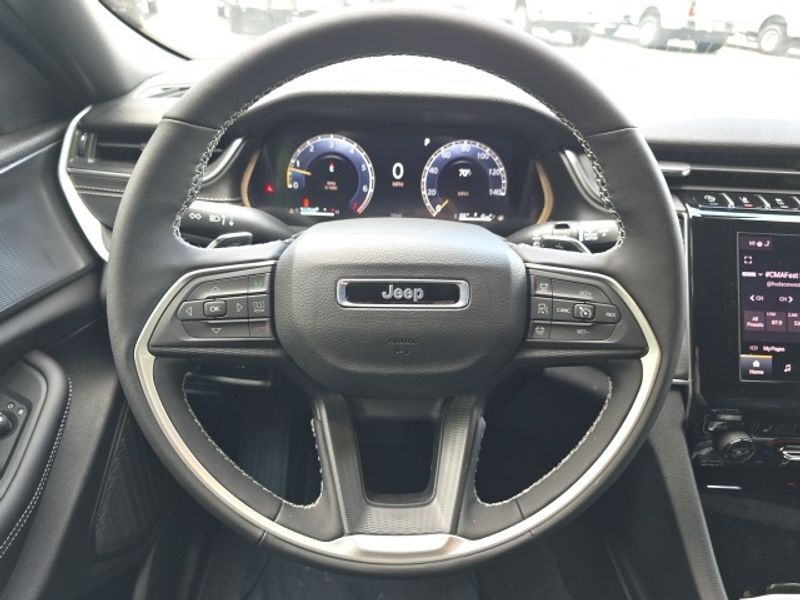 Trailer Tow Package: Rear Load Levelling Suspension; Full-Size Spare Tire; 180 Amp Alternator; 7 and 4-Pin Wiring Harness; Heavy-Duty Engine Cooling; 18" Full-Size Steel Spare Wheel; Automatic Headlamp Levelling System; Trailer Hitch Zoom; Class IV Receiver Hitch,Diamond Black Crystal PC,Power liftgate rear cargo door,Blind Spot Detection,Keyfob remote start,Heated steering wheel,Uconnect w/Bluetooth handsfree wireless device connectivity,Wireless Apple CarPlay/Android Auto smart device wireless mirroring,Heated driver and front passenger seats,10 USB ports,Simulated suede and leatherette front seat upholstery,Driver seat with 8-way directional controls,Front passenger seat with 4-way directional controls,Keyfob trunk control,8.4 inch primary display,Full Speed Forward Collision Warning Plus,Pedestrian/Cyclist Emergency Braking,4G LTE Wi-Fi Hot Spot mobile hotspot internet access,ParkView w/Trailer Hitch Zoom rear mounted camera,Active Lane Management,Cross Path Detection collision mitigation,Adaptive Cruise Control w/Stop & Go,Predictive brake assist system,Cruise control with steering wheel mounted controls,Primary monitor touchscreen,Driver seat power reclining, lumbar support, cushion tilt, fore/aft control and height adjustable control,Quadra-Trac I automatic full-time 4WD,Pentastar 3.6L V-6 DOHC, variable valve control, regular unleaded, engine with 293HP,Front wireless smart device charging,Smart key with hands-free access and push button start,Smart device remote start,Bluetooth wireless audio streaming,Gauge cluster display size: 10.25,Following distance alert,Dual-zone front climate control,Voice-activated climate control,Full gauge cluster screen,Sentry Key immobilizer,Jeep Connect vehicle tracker,Vehicle integrated emergency SOS system,Trailer sway control,Uconnect external memory control,Internet radio capability,Digital/analog instrumentation display,Configurable instrumentation gauges,Electronic stability control system with anti-roll,Hill start assist,Heated rear wiper park,Automatic climate control,Rear Seat Reminder rear seat check warning,ParkSense with Stop rear parking sensors,LED daytime running lights
