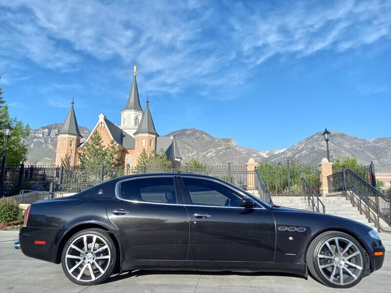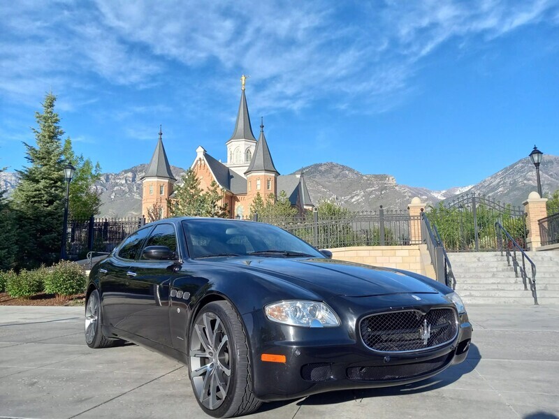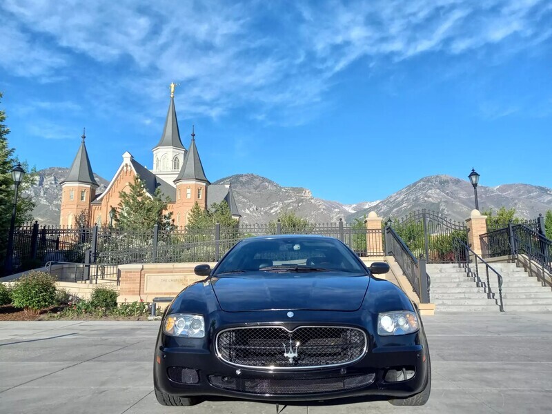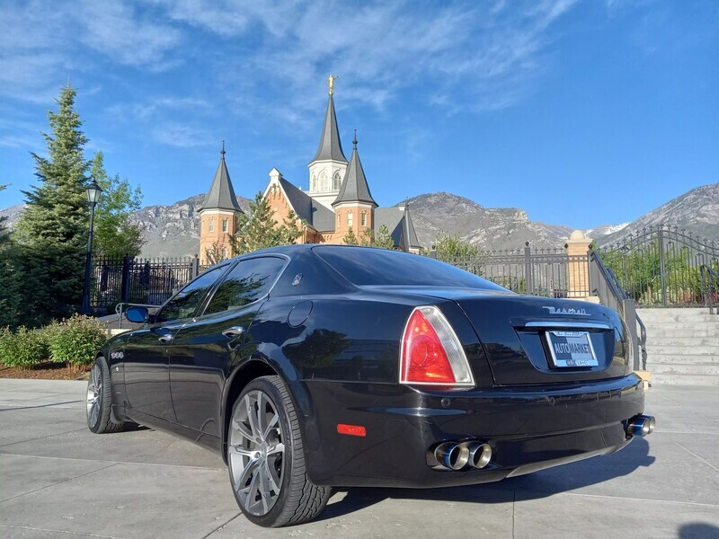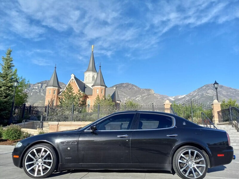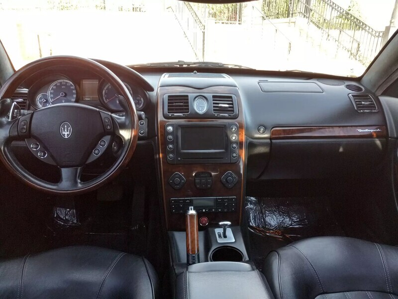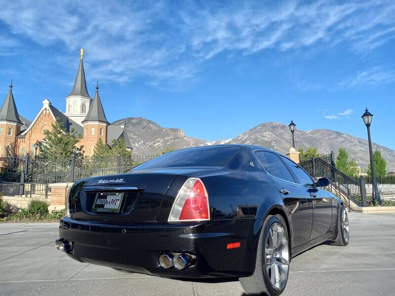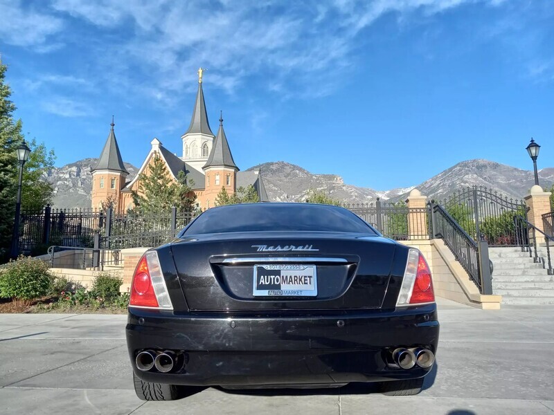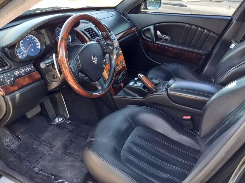 2006 Maserati Quattroporte, 4.2L V8, RWD, Touring Package—metallic black exterior paired with a sleek black leather interior. Classic Italian luxury and performance with timeless design. Don’t miss your chance to own this head-turning sedan—schedule a test drive today!