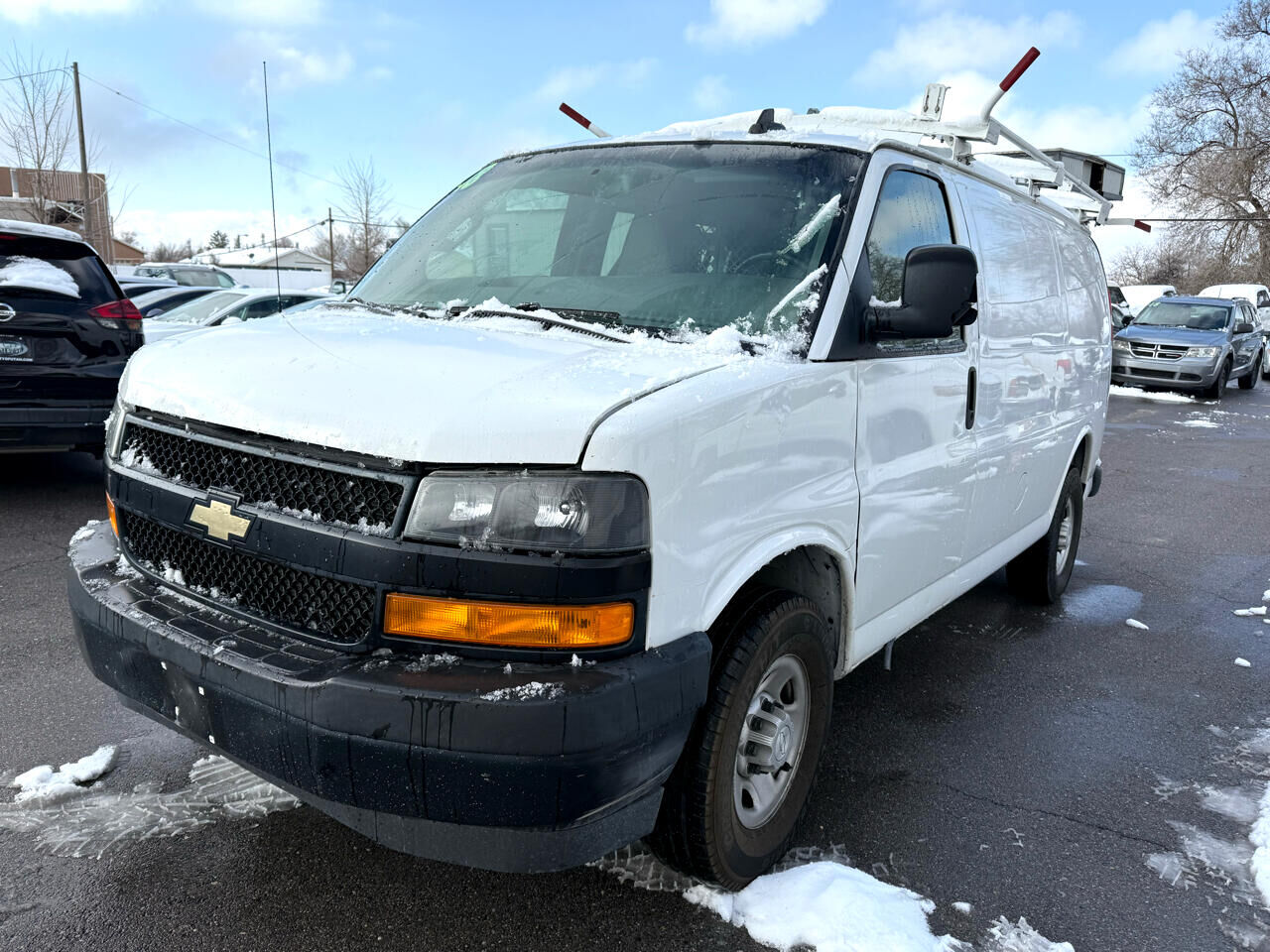 Engine- 4.3L V6 with Direct Injection and Variable Valve Timing- includes aluminum block construction (276 hp [206 kW] @ 5200 rpm- 298 lb-ft of torque [404 Nm] @ 3900 rpm) (Reference the Engine/Axle page for availability.),Rear axle- 3.42 ratio (Reference the Engine/Axle page for availability.),Body- standard,GVWR- 8600 lbs. (3901 kg) (Reference the Engine/Axle page for availability.),Transmission oil cooler- external (Not available with (LWN) 2.8L Duramax Turbo-Diesel engine.),Rear wheel drive,Cooling- external engine oil cooler (Not available with (LWN) 2.8L Duamax Turbo-Diesel engine.),Battery- 600 cold-cranking amps- maintenance-free with rundown protection and retained accessory power,Alternator- 105 amps (Not available with (Y3H) Paratransit Package- (C69) rear air conditioning- (9L7) Wiring junction block equipment accessory- (5BV) Upfitter electrical provisions or (LWN) 2.8L Duramax Turbo-Diesel engine.),Frame- full-length box ladder-type,Suspension- front independent with coil springs and stabilizer bar,Suspension- rear hypoid drive axle with multi-leaf springs,Steering- power,Brakes- 4-wheel antilock- 4-wheel disc,Fuel tank capacity- mid-frame and approximately 31 gallons (117.3L),Exhaust- aluminized stainless-steel muffler and tailpipe,Door- swing-out passenger-side- 60/40 split,Tires- front LT245/75R16E all-season- blackwall,Tires- rear LT245/75R16E all-season- blackwall,Bumpers- front and rear painted Black with step-pad,Headlamps- dual halogen composite,Mirrors- outside manual- Black,Glass- Solar-Ray light-tinted- all windows,Wipers- front intermittent wet-arm with pulse washers,Console- engine cover with open storage bin,Floor covering- full-length Black rubberized-vinyl (Not available with (RFM) rear floor covering delete- (5BV) Upfitter electrical or (PCH) Hotel Shuttle Package.),Steering wheel- steel sleeve column with theft-deterrent locking feature- Black,Instrumentation- analog with speedometer- odometer with trip odometer- fuel level- voltmeter- engine temperature and oil pressure,Oil life monitor,Warning tones- headlamp on and key-in-ignition,Tow/haul mode selector- instrument panel-mounted,Theft-deterrent system- vehicle- PASS-Key III,Defogger- side windows,Cup holders- 3 on the engine console cover,Trim panels- hinged rear side doors and hinged rear doors (Not available with (Y3H) Paratransit Package or (5BV) Upfitter electrical provisions.),Headliner- cloth- over driver and passenger,Visors- driver and front passenger- cloth- padded,Assist handles- driver and right-front passenger,Lighting- interior with 4 dome lights 1 overhead and 3 LED's on cross members in cargo area- includes defeat switch and door handle-activated switches,Cargo tie-downs 6 D-ring attachments on cargo area floor (Not available with (Y3H) Paratransit Package- (5BV) Upfitter electrical provisions or (ZP6) 5-passenger Express Crew Van.),Brake/transmission shift interlock- for automatic transmissions,Hill Start Assist,StabiliTrak- traction assistance and vehicle stability enhancement system,Door beams- steel-side,Daytime Running Lamps,Air bags- driver and right-front passenger- seat-mounted side-impact and head curtain side-impact (Always use safety belts and the correct child restraints. Children are safer when properly secured in a rear seat in the appropriate child restraint. See the Owner's Manual for more information.),Chevrolet Connected Access with 10 years of standard connectivity which enables services such as- Vehicle Diagnostics- Dealer Maintenance Notification- Chevrolet Smart Driver- Marketplace and more; EFFECTIVE WITH SALES STARTING 5/1/2018. (Included and only available with (UE1) OnStar. Limitations apply. Not transferable. Standard connectivity available to original purchaser for ten years from the date of initial vehicle purchase for model year 2018 or newer Chevrolet vehicles. See onstar.com for details and further plan limitations. Connected Access does not include emergency or security services. Availability and additional services enabled by Connected Access are subject to change.)