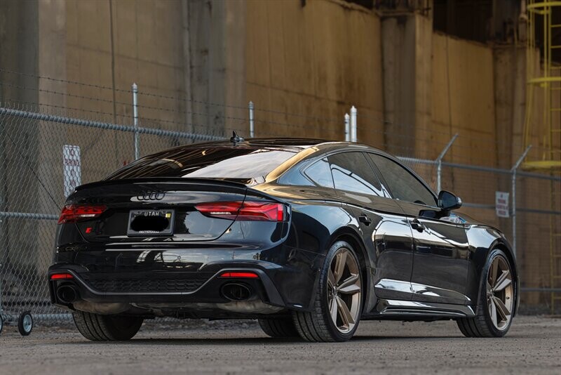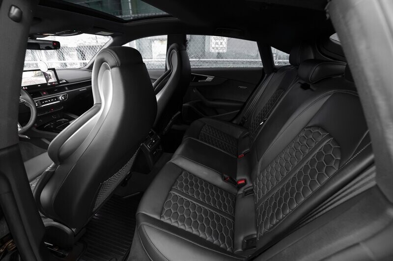 Clean title, Single-owner, Audi RS5 quattro sportback (AWD sedan) in Mythos Black metallic with Black Fine Nappa leather interior and Bronze contrast stitching. 2.9 TFSI V6 biturbo engine and 8-speed Tiptronic automatic transmission makes 444hp and 442ft. lbs. of torque. Factory warranty until 03/2026 or 50k miles, whichever comes first. 40k service just performed at Audi.