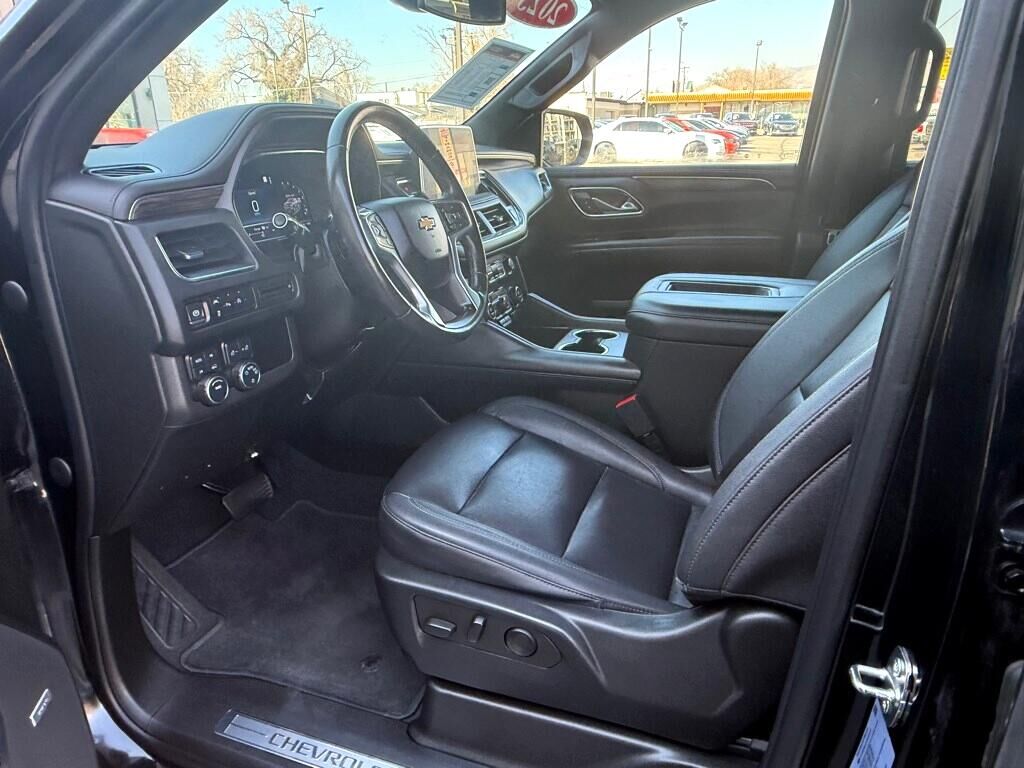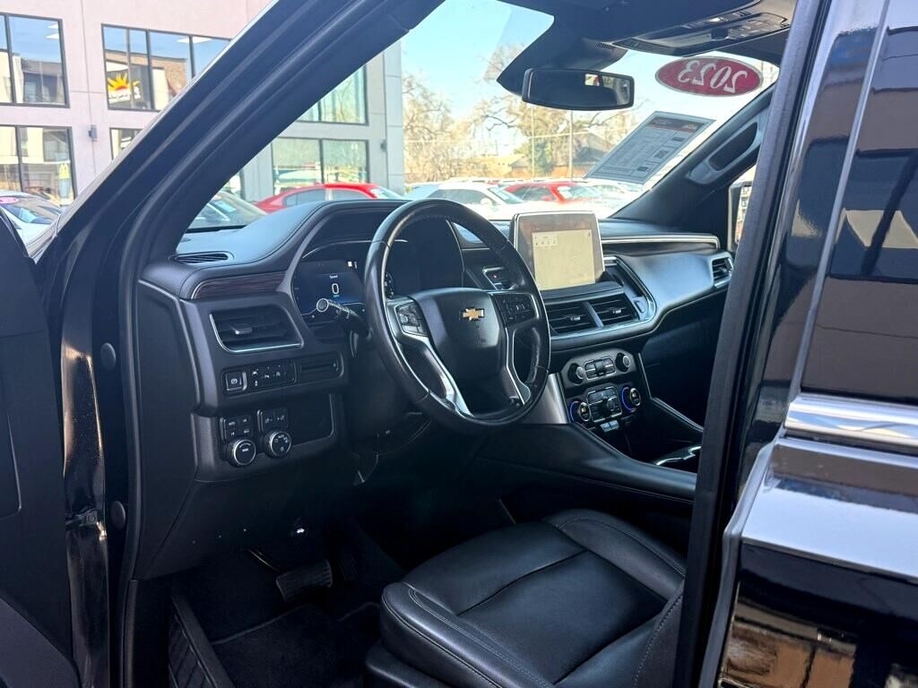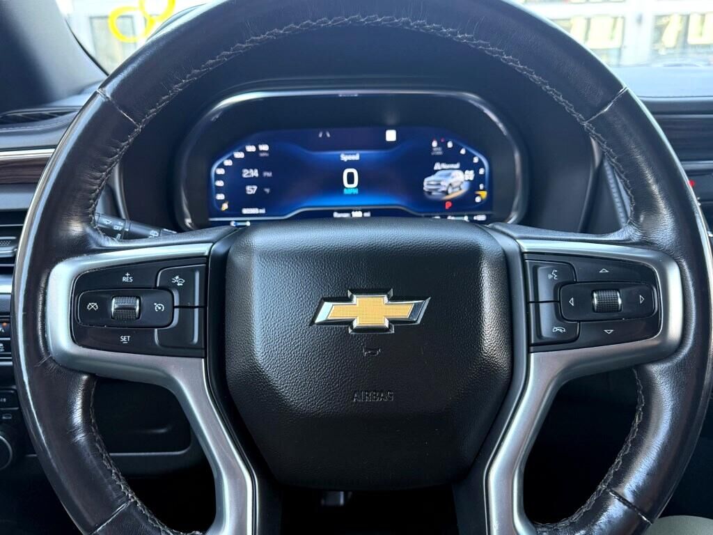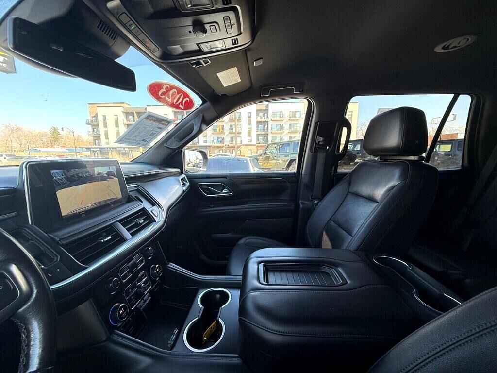 Engine- 5.3L EcoTec3 V8 with Dynamic Fuel Management- Direct Injection and Variable Valve Timing- includes aluminum block construction (355 hp [265 kW] @ 5600 rpm- 383 lb-ft of torque [518 Nm] @ 4100 rpm),Rear axle- 3.23 ratio,Suspension Package- Premium Smooth Ride,GVWR- 7500 lbs. (3402 kg) (Standard on 4WD models with (L84) 5.3L EcoTec3 V8 engine or (L87) 6.2L EcoTec3 V8 engine. Standard on 2WD models with (LM2) Duramax 3.0L Turbo-Diesel I6 engine.),Keyless start- push button,Automatic Stop/Start,Engine control- stop/start system disable button- non-latching,Engine air filtration monitor,Transfer case- active- single-speed- electronic Autotrac does not include neutral. Cannot be dinghy towed (4WD models only. Deleted when (NHT) Max Trailering Package is ordered.),Differential- mechanical limited-slip,4-wheel drive,Cooling- external engine oil cooler- heavy-duty air-to-oil integral to driver side of radiator (Deleted when (LM2) Duramax 3.0L Turbo-Diesel I6 engine is ordered.),Cooling- auxiliary transmission oil cooler- heavy-duty air-to-oil,Battery- 730 cold-cranking amps with 80 amp hour rating (Standard with (L84) 5.3L EcoTec3 V8 engine only.),Alternator- 220 amps (Standard with (L84) 5.3L EcoTec3 V8 engine only.),Trailering equipment includes trailering hitch platform- 7-wire harness with independent fused trailering circuits mated to a 7-way connector and 2"" trailering receiver,Trailer sway control,Hitch Guidance,Suspension- front coil-over-shock with stabilizer bar,Suspension- rear multi-link with coil springs,Steering- power-,Brakes- 4-wheel antilock- 4-wheel disc with DURALIFE rotors,Exhaust- single system- single-outlet,Mechanical Jack with tools,Tire carrier- lockable outside spare- winch-type mounted under frame at rear,Active aero shutters- upper (Standard with (L84) 5.3L EcoTec3 V8 engine only.),Fascia- front,Assist steps- Black with chrome accent strip,Headlamps- LED,Lamps- stop and tail- LED,Mirror caps- body-color,Glass- deep-tinted (all windows- except light-tinted glass on windshield and driver- and front passenger-side glass),Glass- acoustic- laminated,Glass- windshield shade band,Windshield- solar absorbing,Door handles- body-color,Liftgate- rear power programmable- hands-free with emblem projection,Audio system feature- Bose 9-speaker stereo,Seat adjusters- 10-way power includes 8-way power driver and front passenger seats with 2-way power lumbar,Console- floor with storage area and removable storage tray,Floor covering- color-keyed carpeting,Electronic Precision Shift,Steering column lock- electrical (Standard on models built after July 18- 2022.),Steering wheel- wrapped,Driver Information Center- enhanced- 12"" diagonal multi-color digital display includes analog speedometer and tachometer gauges,Rear Seat Reminder,Remote start,Universal Home Remote includes garage door opener- programmable,Theft-deterrent system- content- electrical- unauthorized entry,Wireless charging (Beginning October 31- 2022 through November 20- 2022- certain vehicles will be forced to include (00C) Not Equipped with Wireless Charging- which removes Wireless Charging. See dealer for details or the window label for the features on a specific vehicle.),USB charging-only ports- 4- (2) located on rear of center console and (2) in 3rd row (1 left and 1 right side below quarter glass side window),Defogger- rear-window electric,Power outlets- 2- 120-volt- located on the rear of the center seat and rear cargo area,Power outlet- front auxiliary- 12-volt- located in the center stack of instrument panel,Sill plates- bright- front and rear door,Visors- driver and front passenger illuminated vanity mirrors- sliding,Assist handles- overhead- driver and front passenger- located in headliner,Assist handles- front passenger A-pillar and second row outboard B-pillar (Deleted when SEO (7X2) left- and right-hand spotlamps or SEO (7X3) left-hand spotlamp are ordered.),Lighting- interior with dome light- driver- and passenger-side door switch with delayed entry feature- cargo lights- door handle or Remote Keyless Entry-activated illuminated entry and map lights in front and second seat positions. On Police/Special Service vehicles- the control switch is located in the roof console in lieu of the driver- and passenger-side door switch with delayed entry feature.,Cargo management system,Chevrolet Connected Access capable (Subject to terms. See onstar.com or dealer for details.),Hill Start Assist,StabiliTrak- stability control system with brake assist- includes traction control,Daytime Running Lamps- LED,Teen Driver a configurable feature that lets you activate customizable vehicle settings associated with a key fob- to help encourage safe driving behavior. It can limit certain available vehicle features- and it prevents certain safety systems from being turned off. An in-vehicle report card gives you information on driving habits and helps you to continue to coach your new driver,Airbags- Frontal airbags for driver and front outboard passenger; Seat-mounted side-impact airbags for driver and front outboard passenger; Driver inboard seat-mounted side-impact airbag; Head-curtain airbags for all rows in outboard seating positions (Always use seat belts and child restraints. Children are safer when properly secured in a rear seat in the appropriate child restraint. See the Owner's Manual for more information.),Front outboard Passenger Sensing System for frontal outboard passenger airbag (Always use seat belts and child restraints. Children are safer when properly secured in a rear seat in the appropriate child restraint. See the Owner's Manual for more information.),Front and Rear Park Assist,Following Distance Indicator,Buckle to Drive prevents vehicle from being shifted out of Park until driver seat belt is fastened; times out after 20 seconds and encourages seat belt use- can be turned on and off in Settings or Teen Driver menu,Door locks- rear child security- manual,LATCH system (Lower Anchors and Tethers for CHil